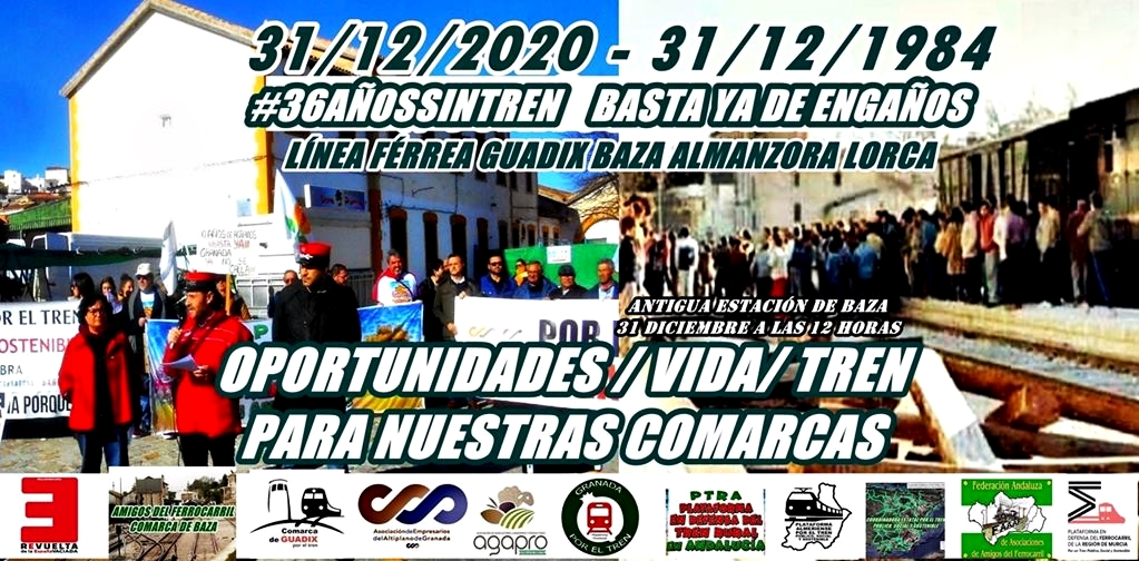 Bajo el lema «36 años sin tren, basta ya de engaños. Oportunidades, vida y tren para nuestras comarcas», el acto está organizado por la Asociación Amigos del Ferrocarril Comarca de Baza, la plataforma Comarca de Guadix por el Tren, la Asociación de Empresarios Altiplano de Granada, la asociación agroganadera AGAPRO y la movilización social La Revuelta de la España Vaciada. En el mismo también se reclamará al Gobierno de España que a lo largo de 2021 se realice el preceptivo Estudio Informativo de reapertura, tal y como se ha vuelto a comprometer recientemente el Ministro de Transportes.