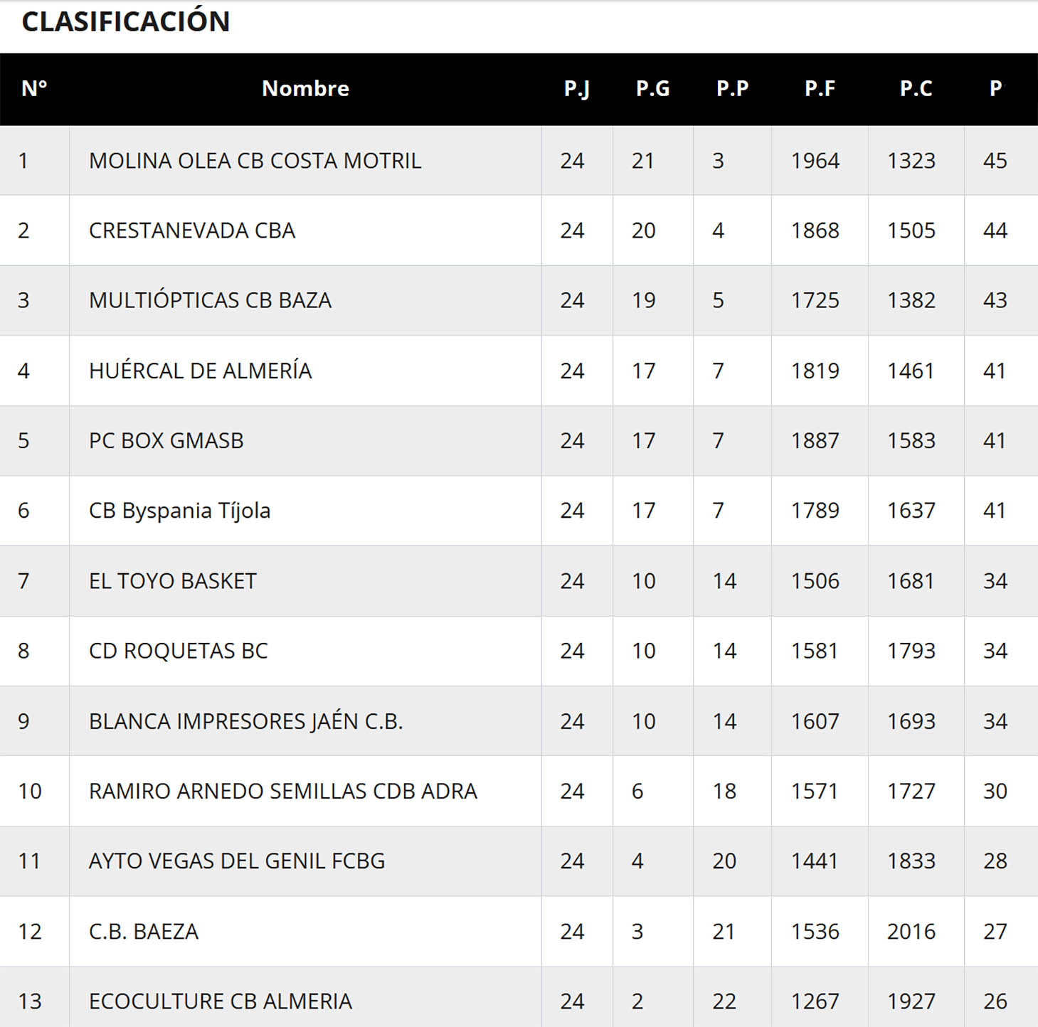 Resultados y clasificación en el grupo C de la Primera Nacional Andaluza de baloncesto, tras la jornada 24 y última de la primera fase. (Clicar en las imágenes para ampliarlas):