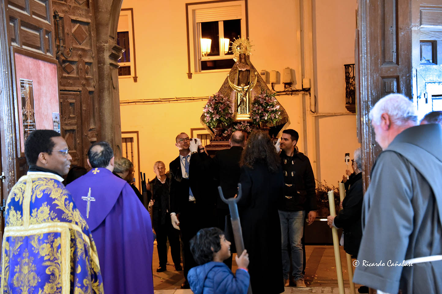 Seguidamente se dio continuación a la procesión, siguiendo el itinerario de retorno acostumbrado, por calle Alhóndiga, Caños Dorados, Plaza de las Eras, Cava Alta, Plaza de San Juan y retorno al templo que la acoge, donde recibió la bienvenida de sus fieles, quienes acabado el acto pasaron ante la imagen, dándose por concluida así esta celebración tan tradicional como arraigada, de la que solo queda esperar que continúen las lluvias que este año están cayendo sobre Baza, para mayor beneficio de nuestra tierra y nuestros campos.