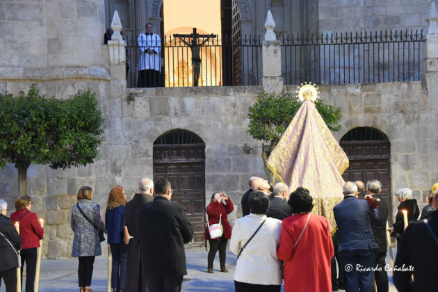 Una tradición que se concretaba con la procesión que partía desde dicha iglesia, en torno a las nueve de la noche y que, llegada a la plaza, la Virgen se colocaba mirando hacia la entrada a la colegiata, en cuya entrada se había colocado al Cristo de los Méndez, con la finalidad de celebrar las tradicionales Rogativas que desde el primer día de su traslado se han venido celebrando y que, de esta forma, culminaban en la noche de ayer.
