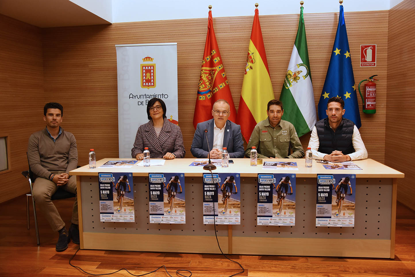 El 5 de mayo se celebra en Baza la quinta prueba de la Shimano Super Cup Massi Gran Premio David Valero, así como una “bicicletada” infantil en la tarde del día anterior. El auditorio del Museo Arqueológico Municipal de Baza acogió, en la mañana del viernes 26 de abril, la presentación oficial de esta prueba, con un acto al que acudieron el alcalde de la ciudad, Pedro J. Ramos, junto con los representantes del resto de instituciones que hacen posible con su financiación la celebración de la Shimano Super Cup en Baza. Por parte de la Junta, acudió la delegada territorial de Desarrollo Educativo, Mª José Martín, y por parte de la Diputación, el coordinador deportivo de la institución, Esteban Ruiz. Junto a ellos participó también el ciclista olímpico bastetano, David Valero, que ese fin de semana competía en su ciudad natal. aprovechando para animar a sus vecinos a estar presentes en la cita del 5 de mayo.