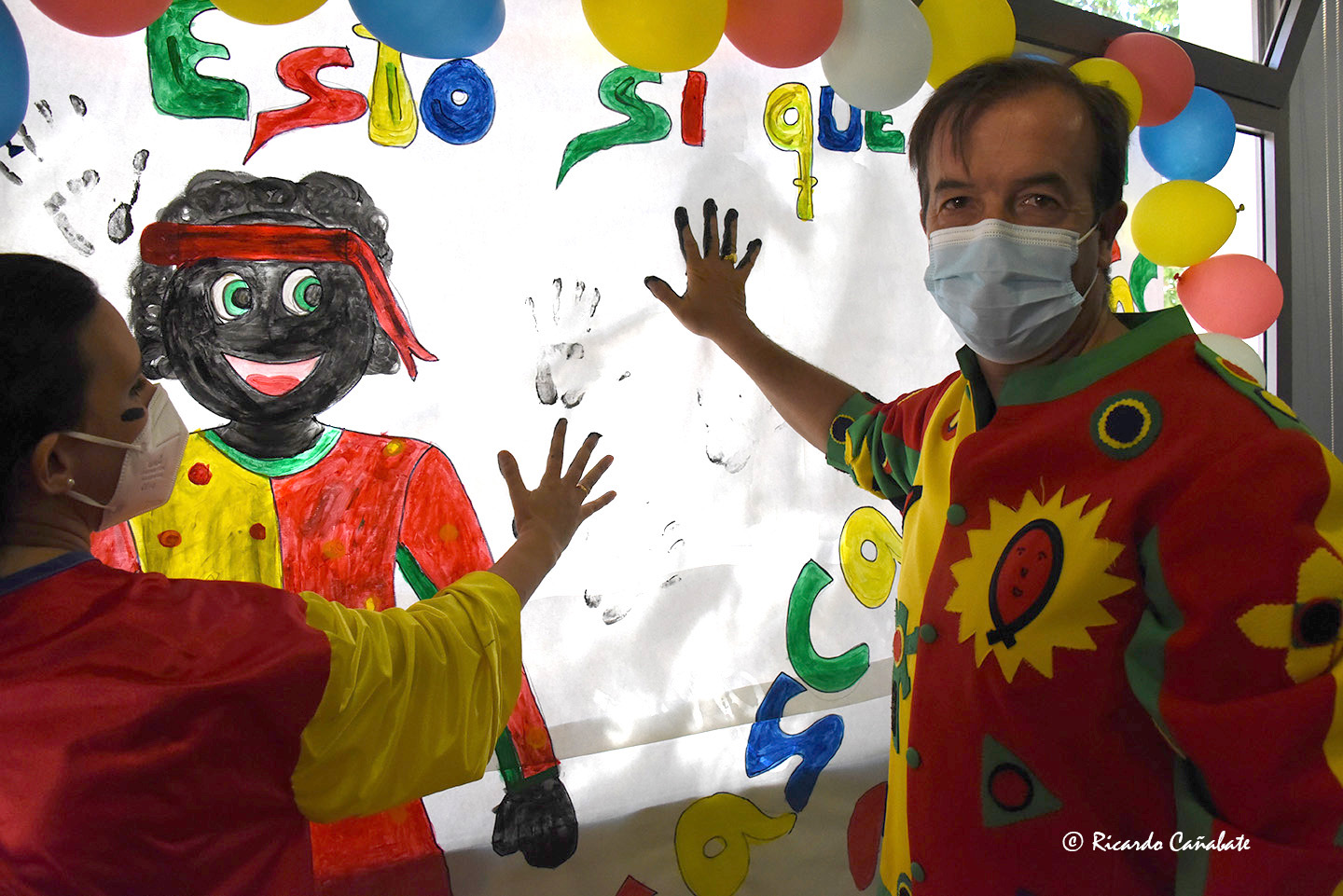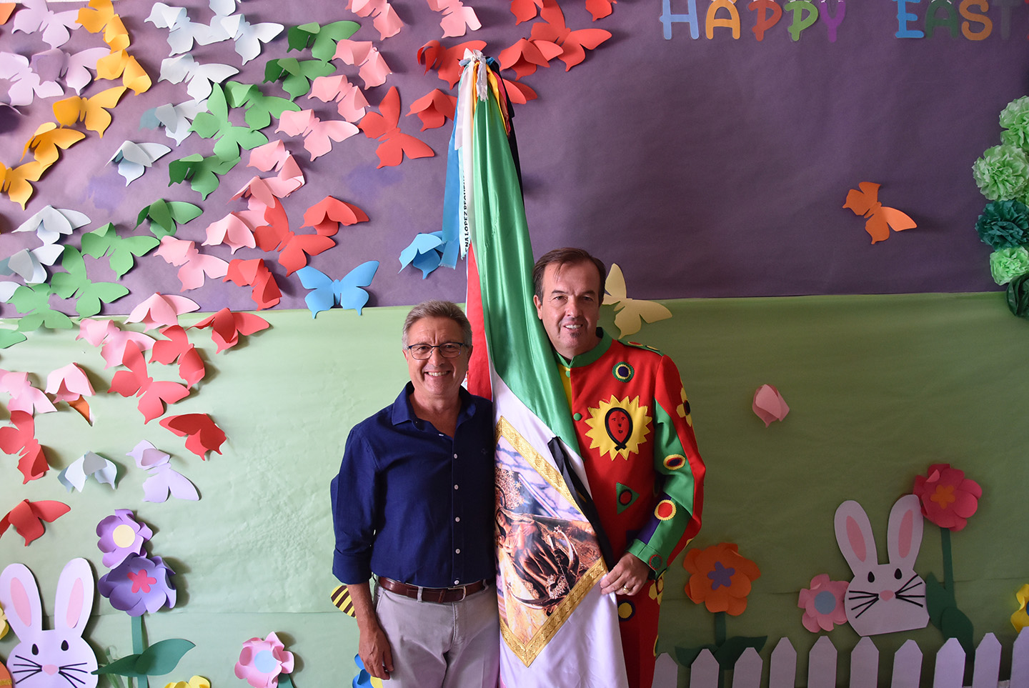 Naturalmente, Cascamorras departió con todas las personas que allí había, se fotografió con ellos y terminó haciendo una jura de bandera, antes de plasmar las huellas de sus manos en un mural que las esperaba, tras lo que fue obsequiado con un buen lote de las manos de chocolate que tan populares han hecho Luismi y toda su familia.
