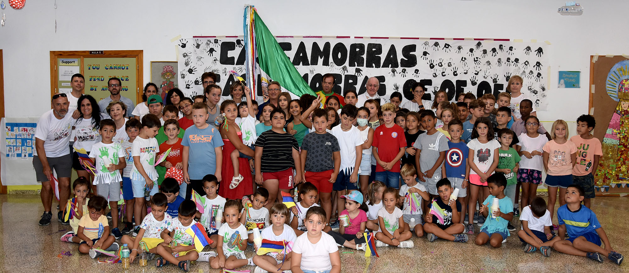 El Cascamorras de Honor, Jesús Samaniego, compartió el acto de clausura de la Escuela de Verano con las autoridades municipales y el equipo docente. La Escuela de Verano del Ayuntamiento de Baza cierra este viernes 26 de agosto su 28 edición como alternativa lúdico-educativa y de conciliación familiar para 140 niños y niñas, 60 de ellos con el programa de garantía alimentaria. Cifras que compensan ese esfuerzo organizativo que se realiza para poder llevar a cabo este programa dirigido a menores en edad escolar que, por distintas circunstancias, necesiten de un apoyo extra durante el verano y/u ocupar su tiempo libre en actividades lúdico-educativas. Organizada por el Área de Bienestar Social, Igualdad, Mujer y Salud, la Escuela de Verano culmina así 28 años ofreciendo este servicio que, además de ser una excelente opción estival para los más pequeños, ofrece una alternativa para la conciliación a las familias.
