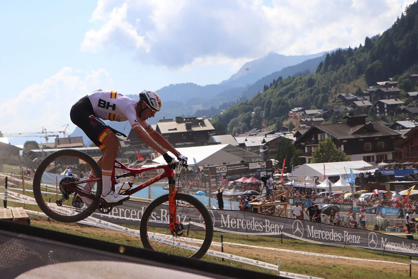 La carrera de Les Gets se inició con un grupo, en el que estaban todos los favoritos, marcando el ritmo desde la primera vuelta y con el ciclista de Baza, que esta vez tuvo una buena salida, corriendo junto a Nino Schurter, el italiano Luca Braidot, los suizos Filippo Colombo y Titouan Carod, el francés Jordan Sarrou, el rumano Vlad Dascalu, el neozelandés, Sam Gaze y el sudafricano Alan Hatherly. Un grupo donde estaba la flor y nata del MTB mundial a falta de Tom Pidcock, que salió mal, pero que en la primera vuelta ya pasó del puesto 53 al 16.