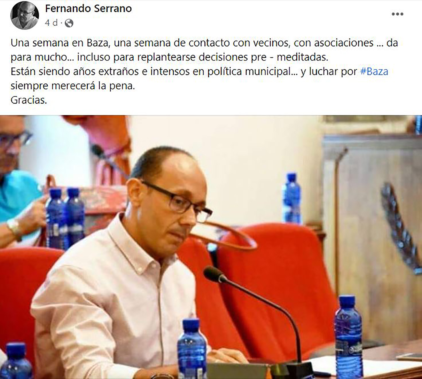 Preguntado sobre este asunto el alcalde bastetano, Manolo Gavilán, cual si ya adivinara lo que fue una conversación posterior con su más que posible rival a la alcaldía, entiende que corresponde a las personas y partidos tomar sus decisiones, mientras él mantiene y mantendrá su talante democrático y más, precisamente, con Fernando Serrano, que es una persona que mantiene una relación corporativa en las mejores condiciones y si ha decidido dar este paso, seguramente lo hará con la intención de aportar lo mejor para la ciudad.