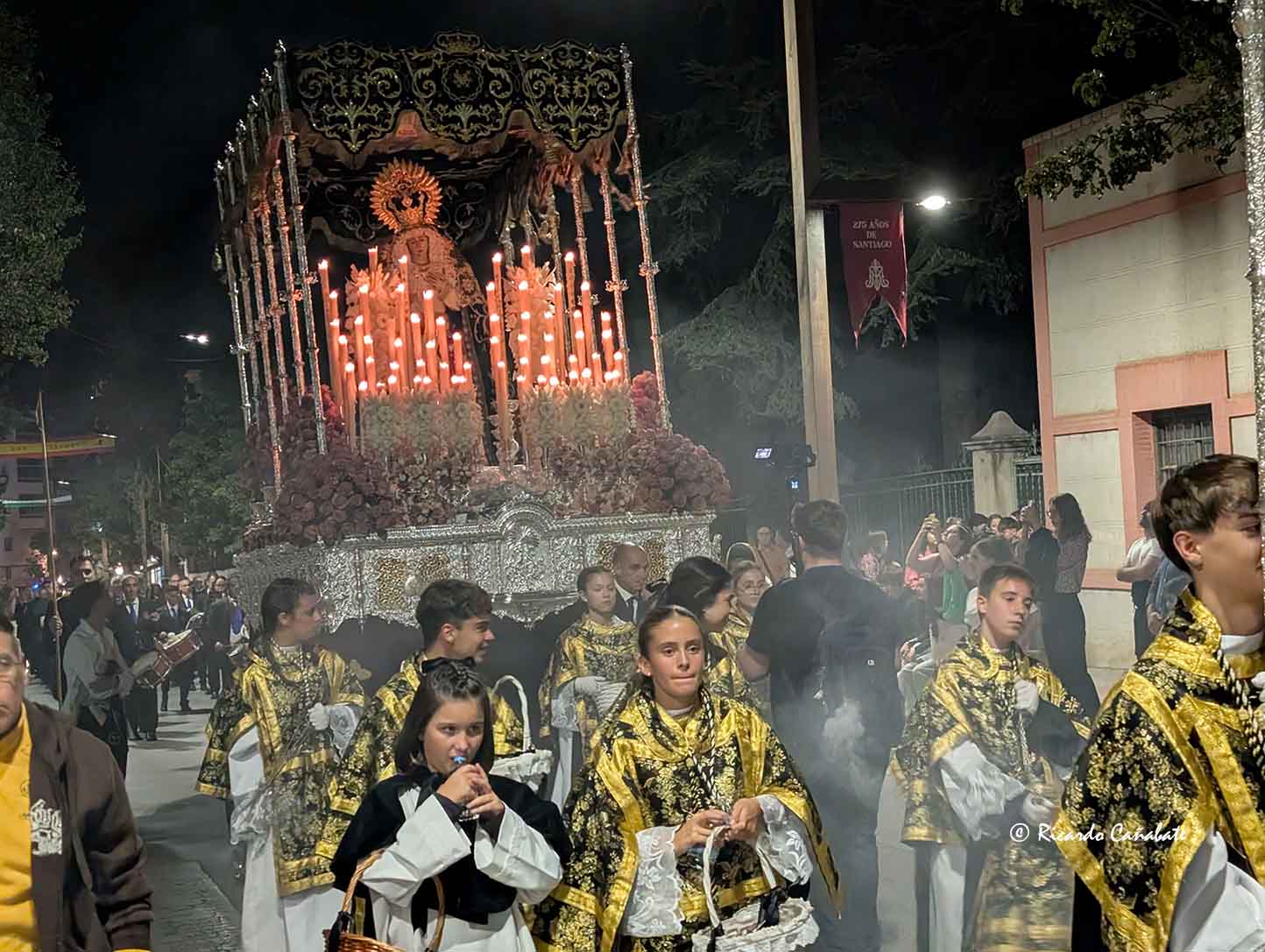 El 275 aniversario de la cofradía de Santiago se celebró así con una procesión extraordinaria que unió solemnidad, tradición y participación popular. Una noche en la que el barrio se vistió de gala para recibir a su titular mariana, reafirmando la vigencia de una devoción que se mantiene viva desde hace más de dos siglos y medio.