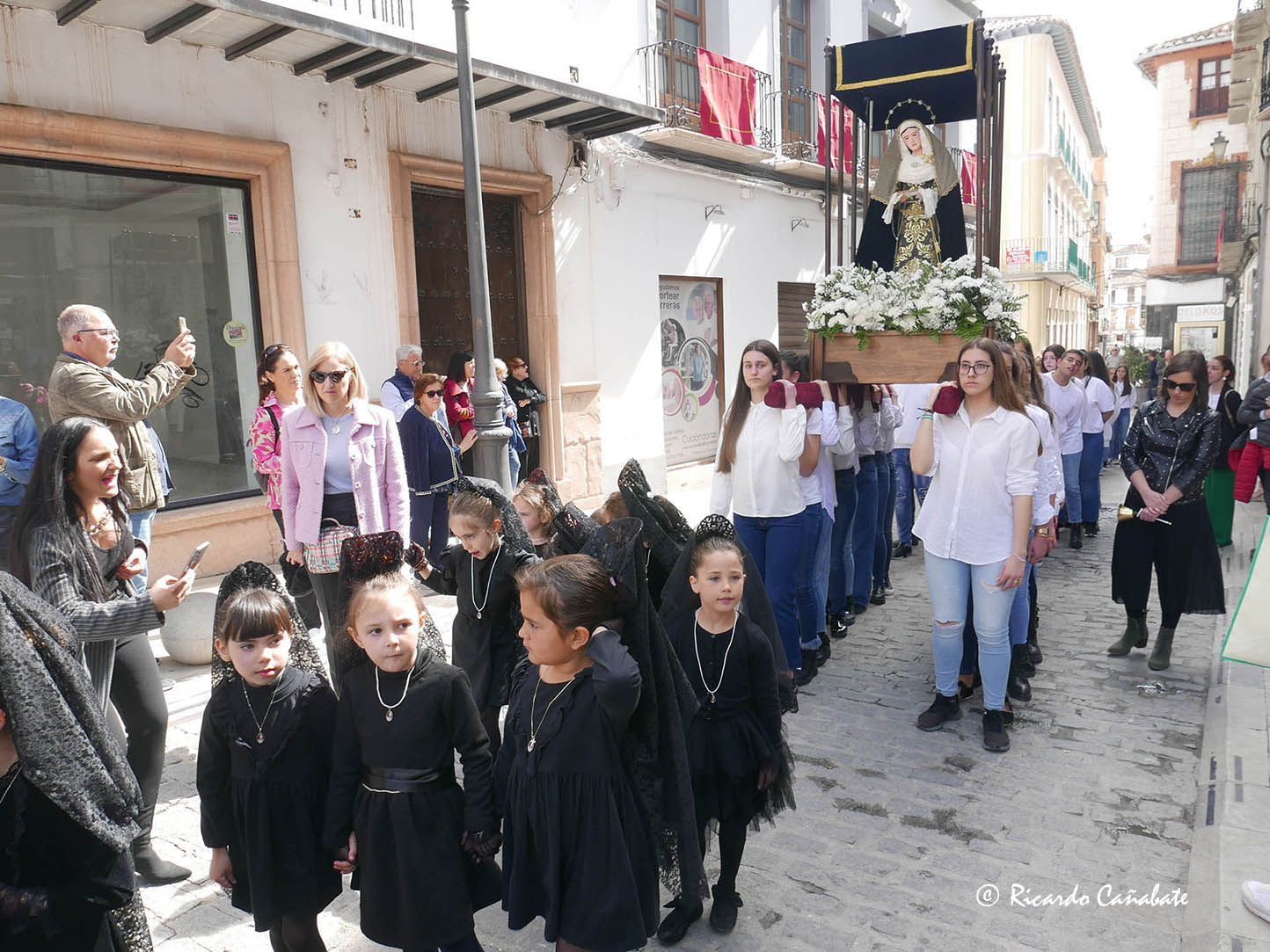 Añadir también que, aunque al principio se podían ver huecos en las calles, quizás por lo temprana de la hora, los bastetanos apoyaron con su presencia a esta procesión a la que se fueron sumando cada vez más espectadores, para terminar con un más que concurrido retorno a su Casa de Hermandad, en una abarrotada Plaza de San Juan.