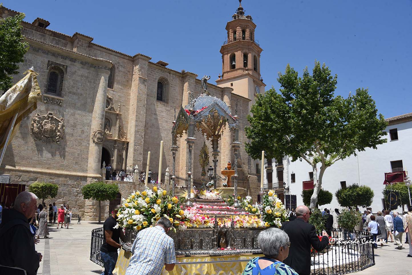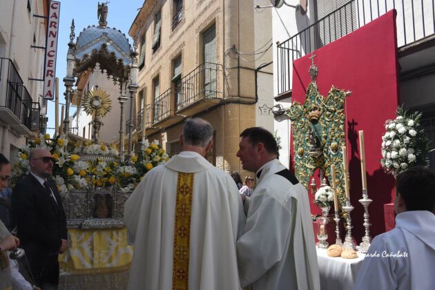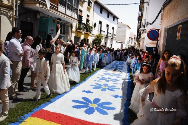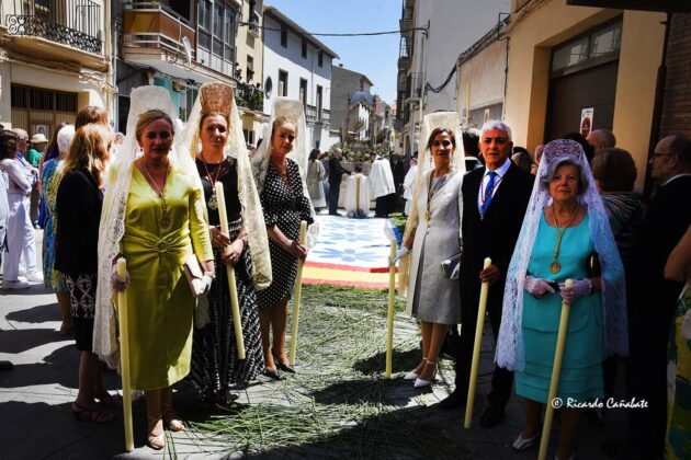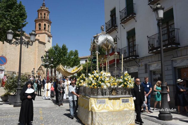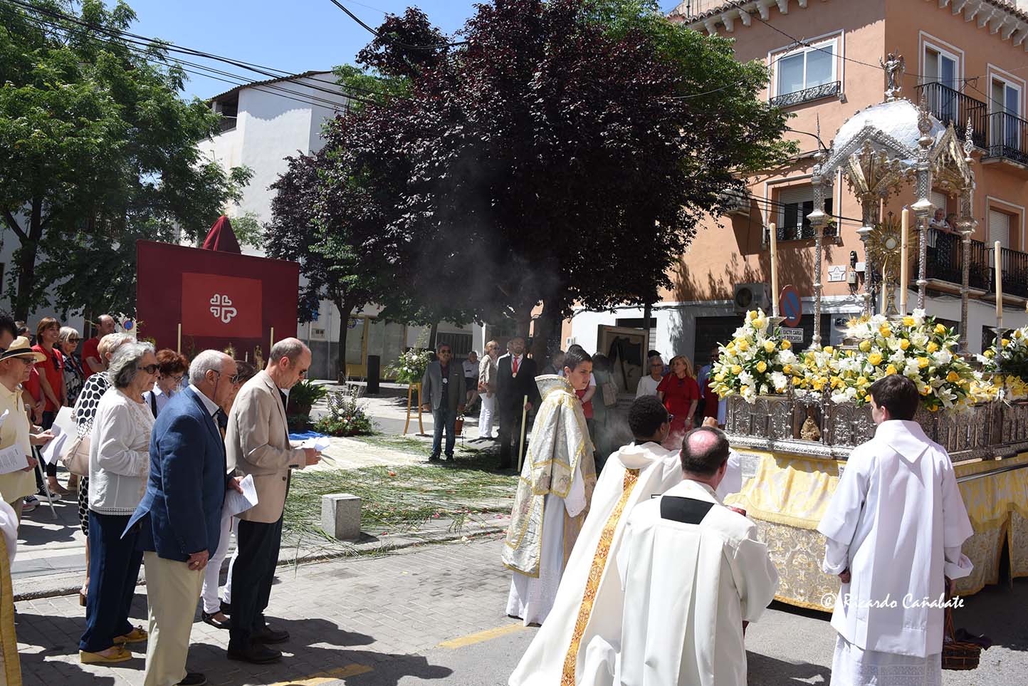 Un recorrido en el que se habían instalado un total de nueve altares y en el que la Hermandad de la Santa Cruz volvió a realizar su alfombra de sal con motivos decorativos, en la calle de las Monjas. También se sucedieron diferentes petalás, en varios puntos de un recorrido en el que no faltaron las banderas y colgaduras en los balcones, lo que contribuyó a una mejor vistosidad del cortejo que contó con una numerosa presencia de público en las calles bastetanas.
