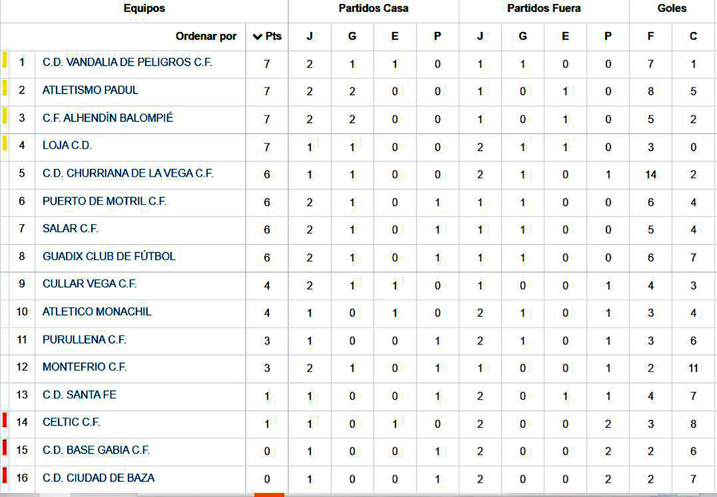 Clasificación tras la tercera jornada en el grupo granadino de la Primera Andaluza Senior: