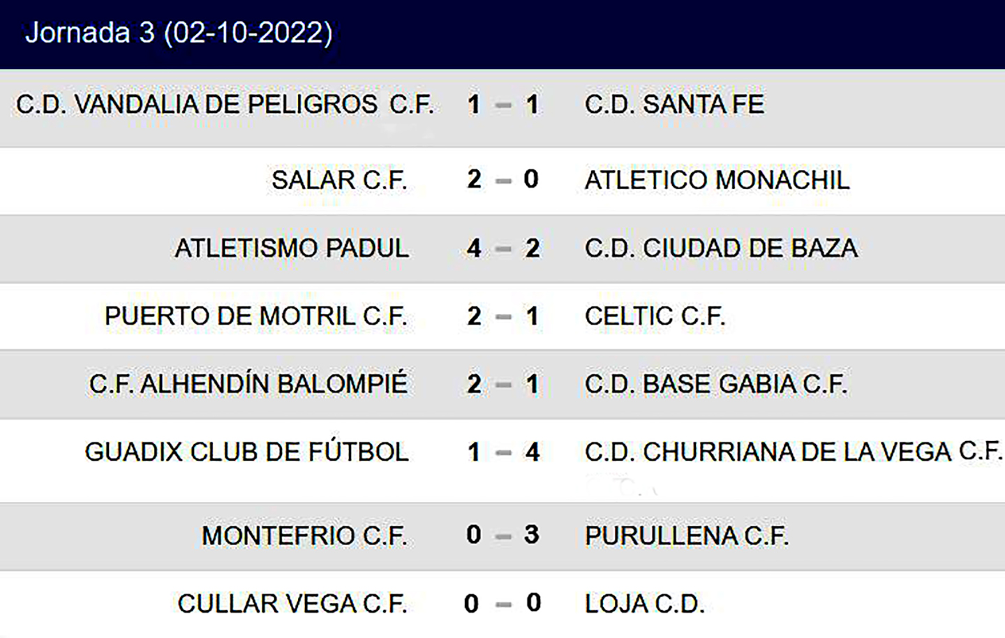 Resultados de la tercera jornada en el grupo granadino de la Primera Andaluza Senior: