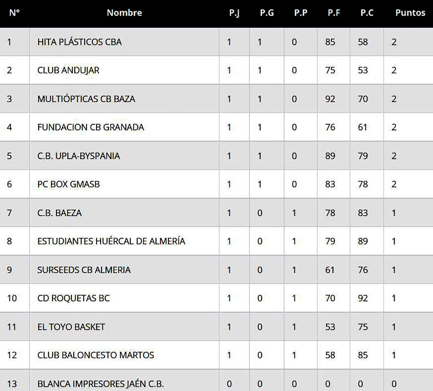 Clasificación de la Primera Nacional Andaluza, tras la primera jornada: