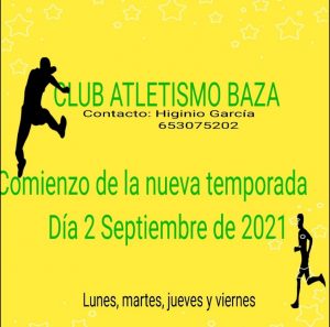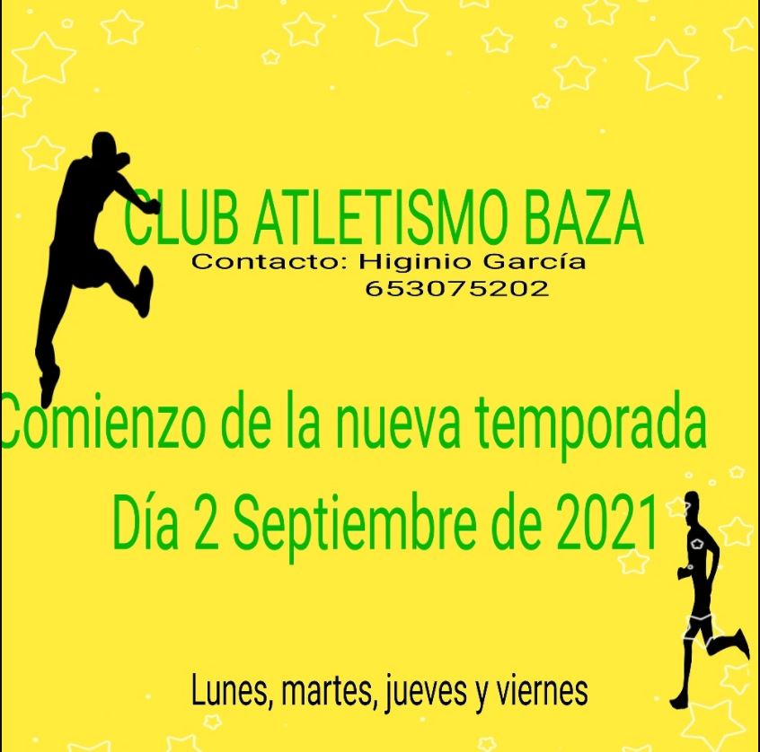 El Club de Atletismo Baza inicia las actividades de la nueva temporada con un llamamiento a todos los interesados en practicar alguna de las modalidades atléticas. El Club de Atletismo Baza se fundó, como una sociedad sin ánimo de lucro, en el año 1995, de la mano de Higino García López, Juan Pedro Magdaleno, Jesús Rosell, Javier Jiménez y Gabriel Manzano, entre otros, teniendo como principal objetivo la promoción del atletismo entre las categorías inferiores (infantiles, cadetes y juveniles).
