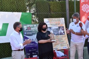 El presidente del club aprovechó la ocasión para hacer entrega a la presidenta de Covirán, Patro Contreras, del máximo galardón del torneo, con la imagen de la Dama de Baza como protagonista, en esta edición que coincide con la celebración del 50 Aniversario de su descubrimiento. Lo hizo en reconocimiento a ese apoyo que Covirán presta en la donación de alimentos desde hace cuatro años.