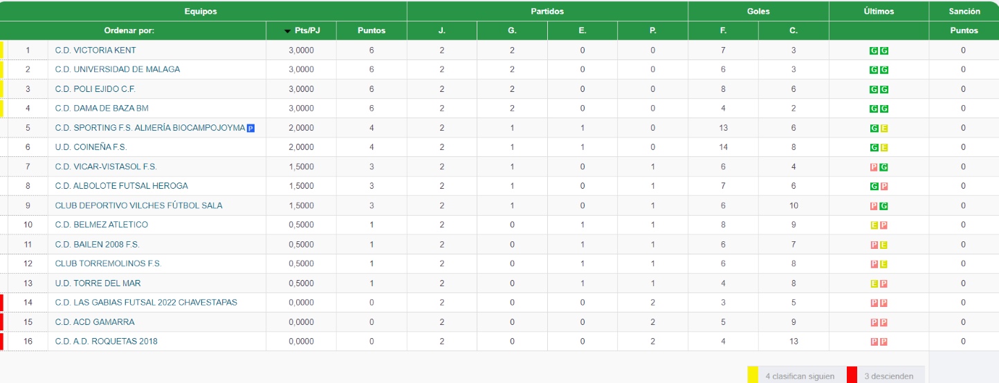 Con este resultado, el Dama de Baza se sitúa en la cuarta posición de la tabla, con 6 puntos, los mismos que el líder, y un balance de 4 goles a favor y 2 en contra. El próximo desafío será enfrentarse al Victoria Kent, actual líder de la categoría, en su visita a Alhaurín de la Torre.