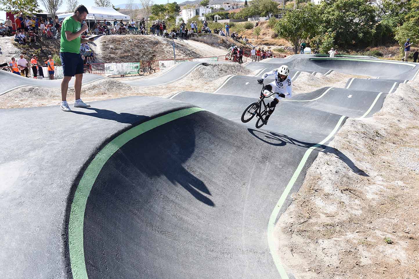 80 participantes y varios centenares de personas en el Campeonato de Andalucía de Pump Track celebrado en el nuevo circuito de Baza. El nuevo circuito de Pump Track de Baza, ubicado dentro del circuito de bicicleta de montaña «David Valero», en la zona de la Fuensanta, fue el escenario el pasado domingo 29 de septiembre de la segunda edición del Campeonato de Andalucía de Pump Track. La competición reunió a 80 ciclistas de diversas categorías, provenientes de diferentes localidades de Andalucía, y congregó a más de doscientas personas que acudieron a disfrutar del evento.