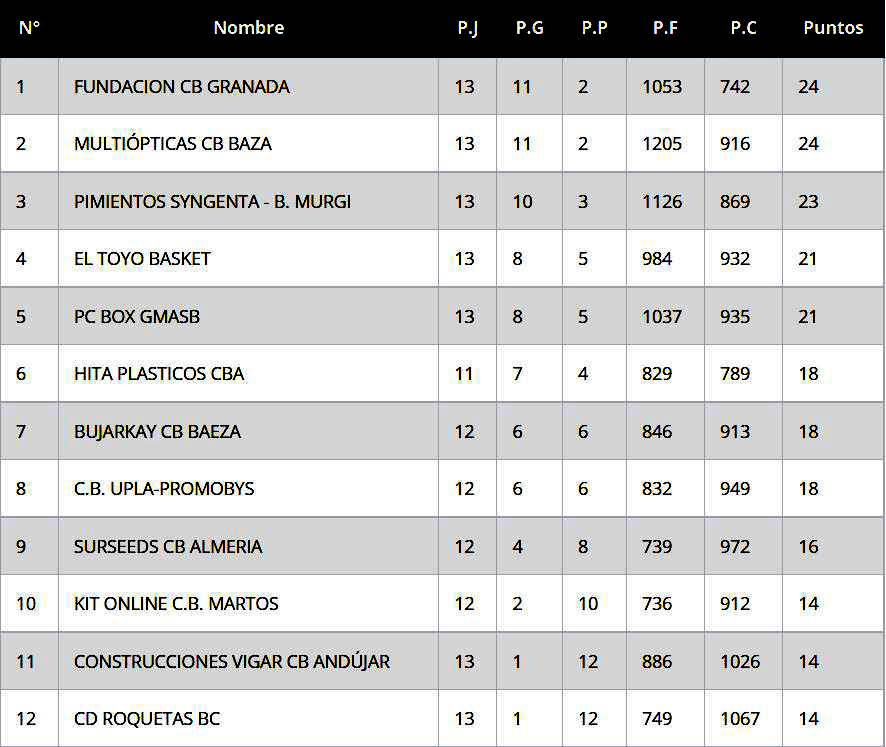 Resultados y clasificación en el Grupo B de la Primera Nacional de Baloncesto: