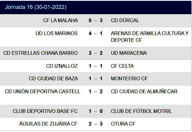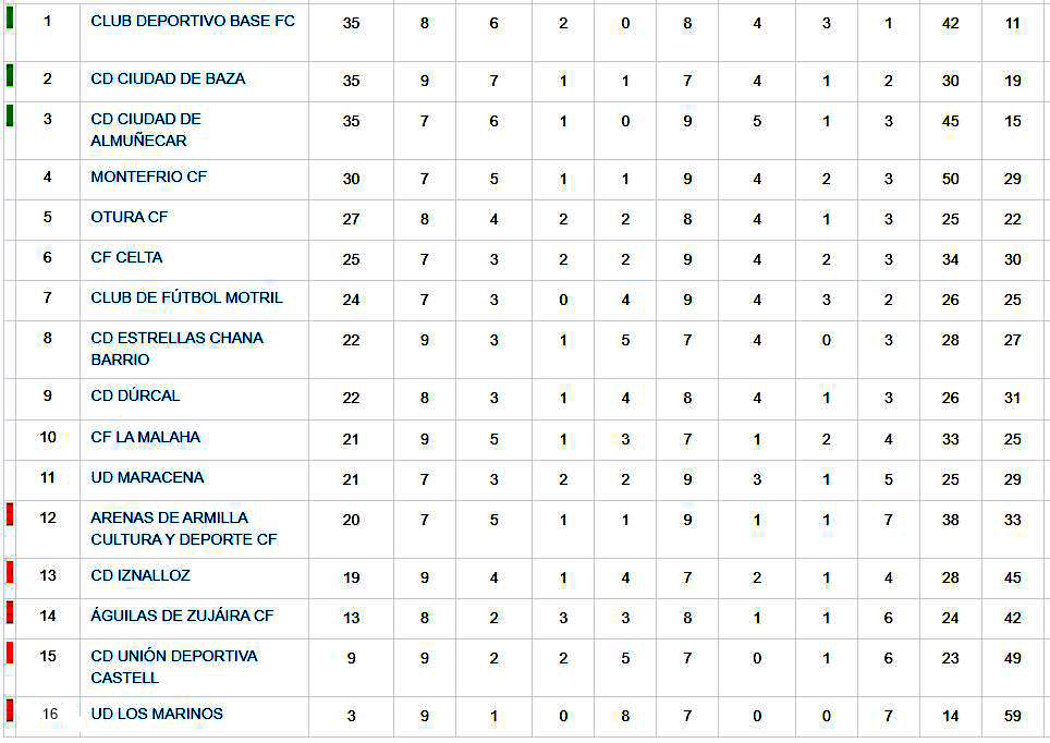 Resultados y clasificación en el Grupo granadino de la Segunda Andaluza Sénior de Fútbol: