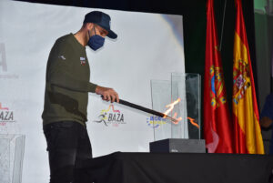 Se dejaron para el final los momentos más emotivos: la entrada al pabellón de la Bandera con la que Aces Europa reconoce a Baza como Ciudad Europea del Deporte, portada por una comitiva que simbolizaba la inclusión y la integración a través del deporte; y el recorrido de la llama que, simbolizando el fuego que hizo eterna a la Dama de Baza, prende en todos la ilusión de este año. Precisamente, la Dama de Baza, encarnada por Conchi González, iniciaba un emotivo recorrido por el pabellón que, tras cruzar las instalaciones en su tramo final uno de los deportistas bastetanos en tirolina, acababa en las manos de David Valero, medallista olímpico. Con él prendiendo la llama de este año finalizaba este emotivo acto en el que fue fundamental, como en todos los eventos deportivos, la colaboración de Protección Civil, Cruz Roja, voluntarios y voluntarias, cuerpos y fuerzas de seguridad y emergencias y un completísimo equipo técnico y humano.