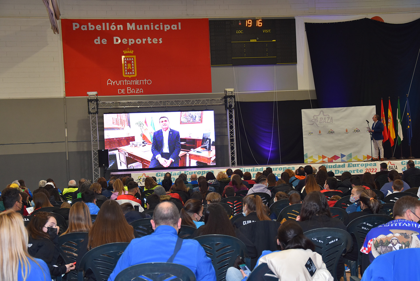 Sobre el escenario, el alcalde Manolo Gavilán recordaba a todos los asistentes que los protagonistas de este año “sois vosotros, los que amáis el deporte”. Y reconocía emocionado que ver el pabellón lleno de gente demostraba el motivo de la elección de Baza como Ciudad Europea del Deporte y la implicación de toda la ciudadanía. “Iniciamos este reto que nos va a situar en el mapa deportivo de España y Europa. Disfrutémoslo”, a lo que añadió que “Hay que seguir haciendo inversiones, porque en Baza las instalaciones se quedan pequeñas y se desgastan por el enorme uso que tienen”, apuntaba.