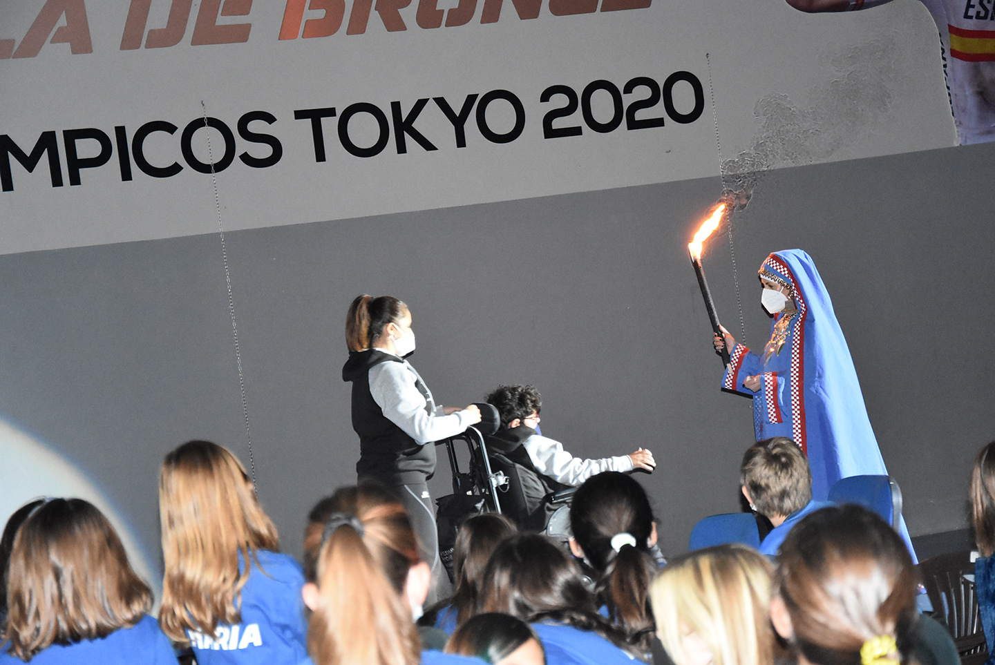 Se dejaron para el final los momentos más emotivos: la entrada al pabellón de la Bandera con la que Aces Europa reconoce a Baza como Ciudad Europea del Deporte, portada por una comitiva que simbolizaba la inclusión y la integración a través del deporte; y el recorrido de la llama que, simbolizando el fuego que hizo eterna a la Dama de Baza, prende en todos la ilusión de este año. Precisamente, la Dama de Baza, encarnada por Conchi González, iniciaba un emotivo recorrido por el pabellón que, tras cruzar las instalaciones en su tramo final uno de los deportistas bastetanos en tirolina, acababa en las manos de David Valero, medallista olímpico. Con él prendiendo la llama de este año finalizaba este emotivo acto en el que fue fundamental, como en todos los eventos deportivos, la colaboración de Protección Civil, Cruz Roja, voluntarios y voluntarias, cuerpos y fuerzas de seguridad y emergencias y un completísimo equipo técnico y humano.