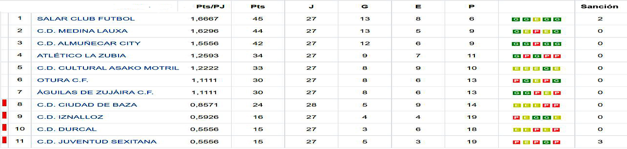De todos modos el CD Ciudad de Baza ya tenía asegurada esa cuarta plaza por la cola, ante una última jornada en la que le toca descansar, dado que es un grupo con número impar de equipos.