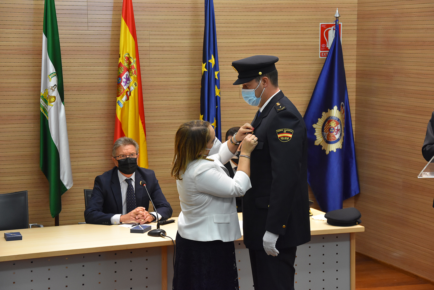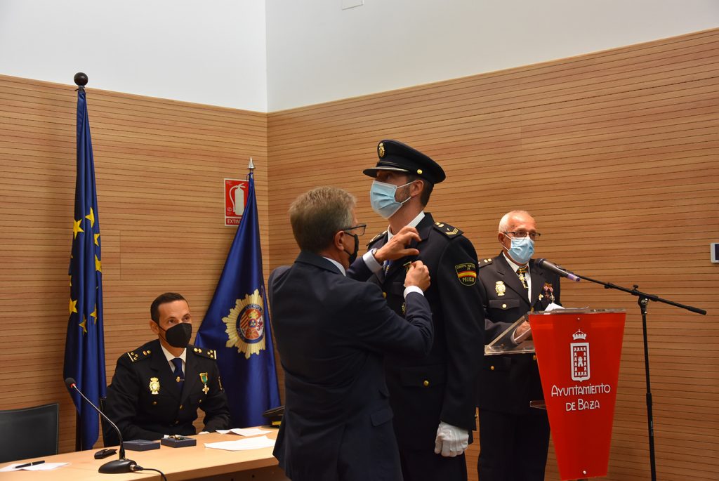 Un emotivo acto en el que se ha hecho entrega de tres condecoraciones de la Orden al Mérito Policial a otros tantos agentes de Baza. El alcalde de Baza, Manolo Gavilán, el Jefe de la Comisaría Local de Baza, Alejandro López, y la Jueza del Juzgado de 1ª Instancia e Instrucción de Baza, Carmen Apestegui, fueron los encargados de otorgar estas distinciones en un acto especialmente emotivo que arrancaba con el himno de España y finalizaba con un homenaje a los Policías fallecidos en acto de servicio y el Himno de la Policía Nacional.
