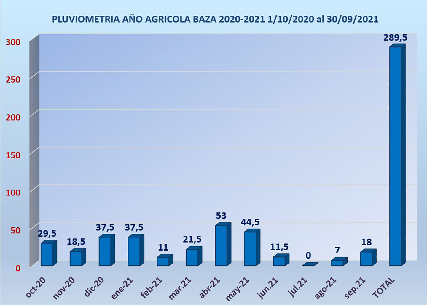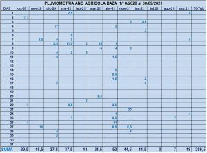 El pasado 30 de septiembre finalizaba el año agrícola con una escasa cantidad de lluvia caída sobre nuestra ciudad: 289,5 litros, de los que 25 son de los 3 últimos meses. La cifra de agua recogida en el último año agrícola en nuestra ciudad sigue bajando, año tras año. Justo ahora, pero un año antes, nos quejábamos de los 377,5 litros que se habían recogido en la anualidad anterior 2019-20. Un total de 88 litros menos, que es una cantidad más que considerable.