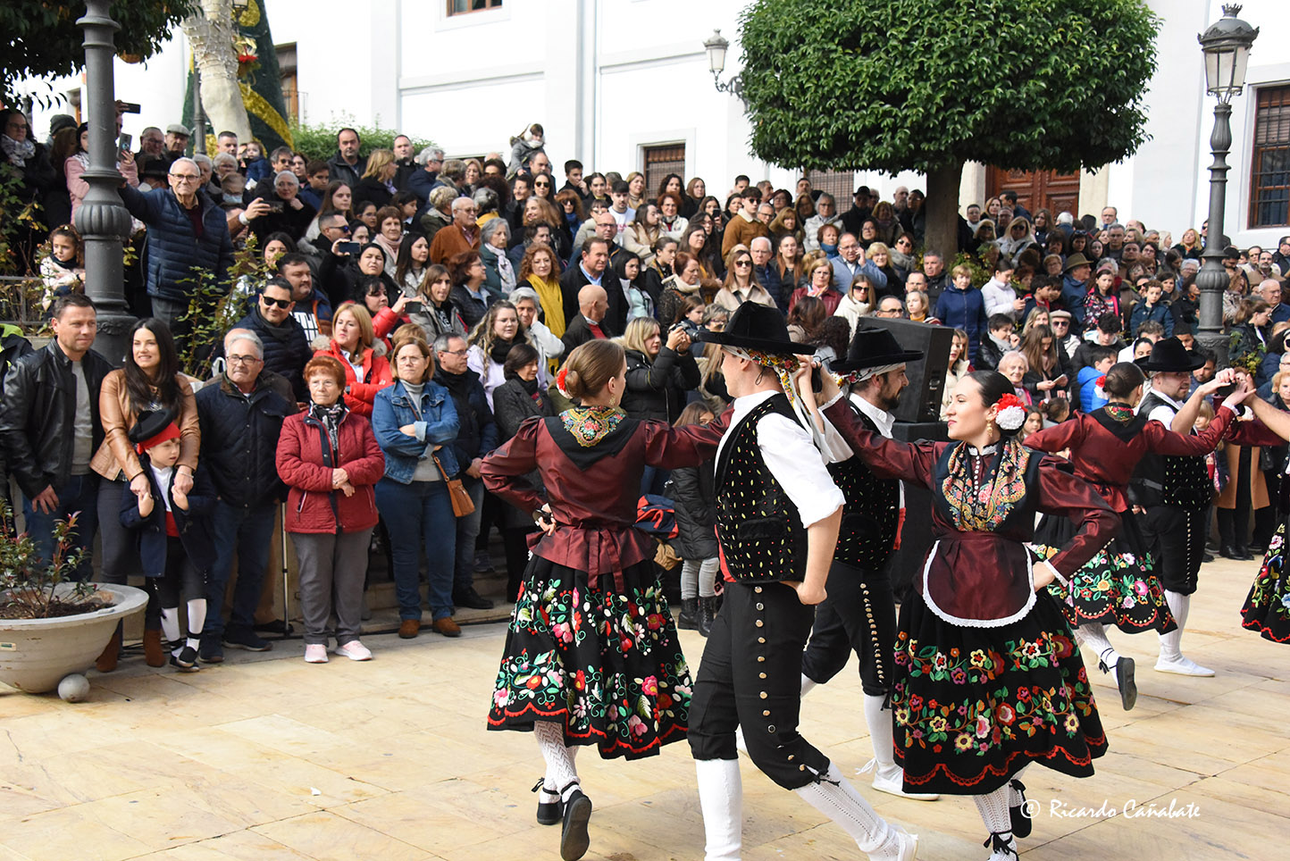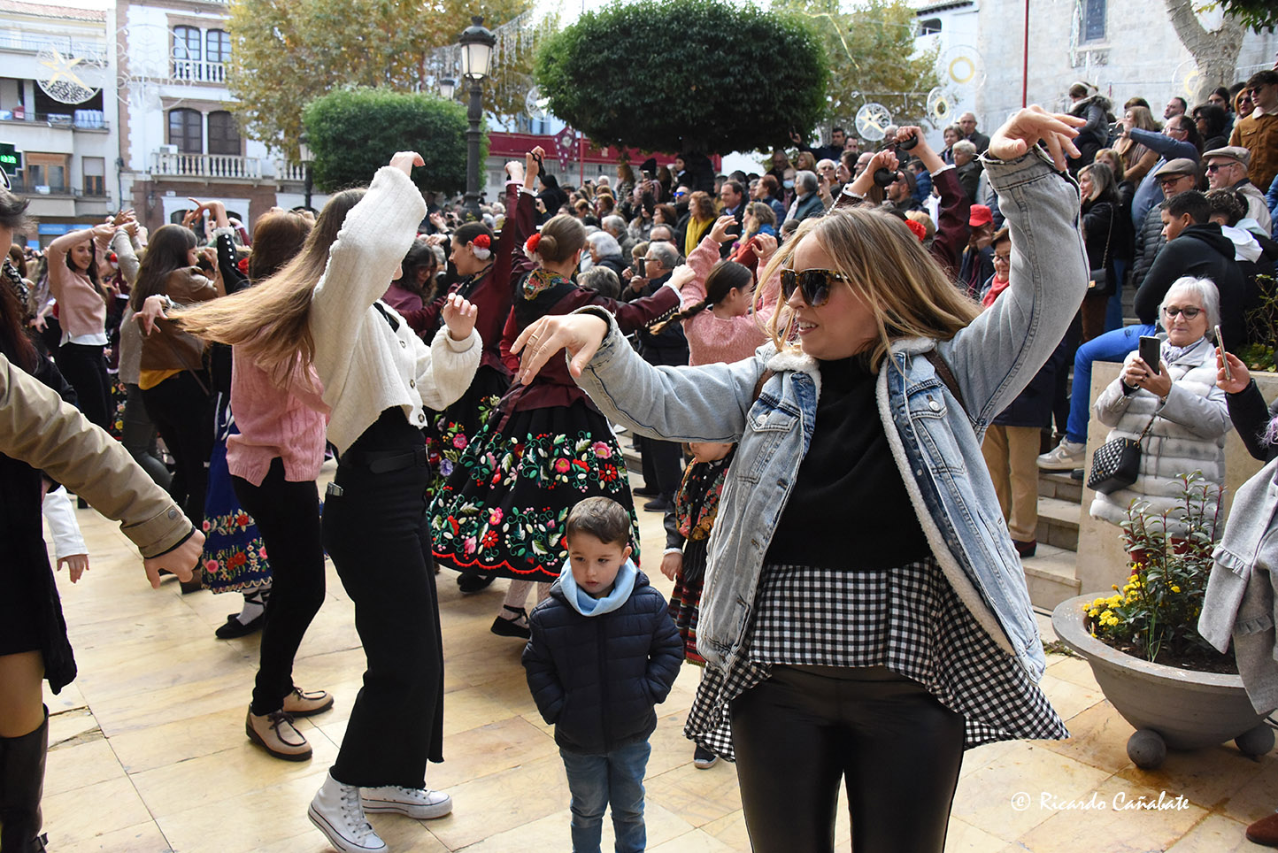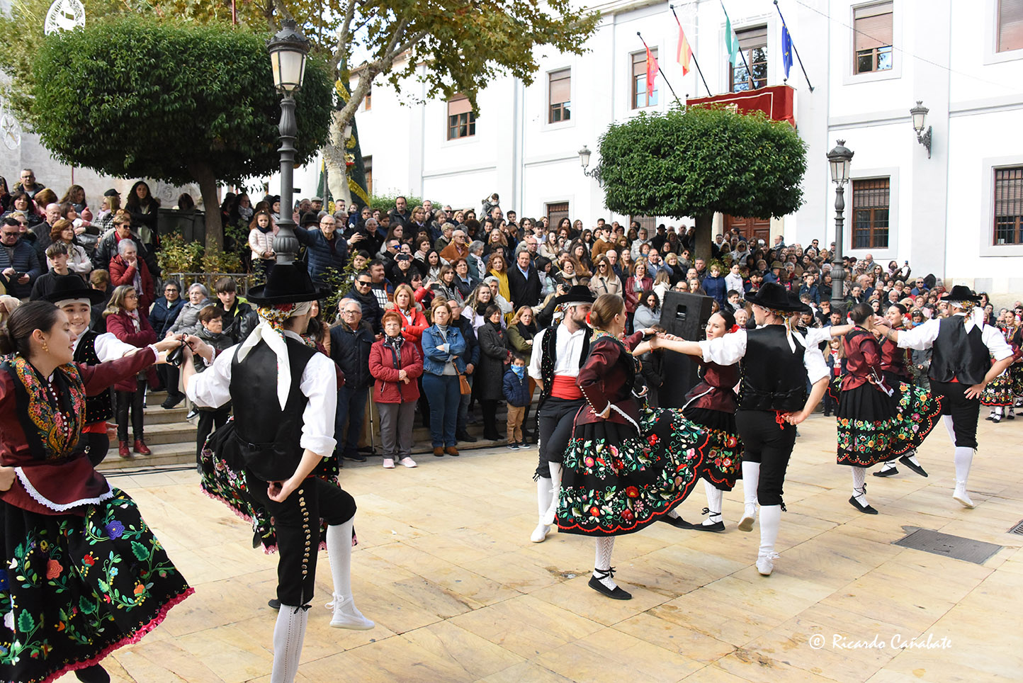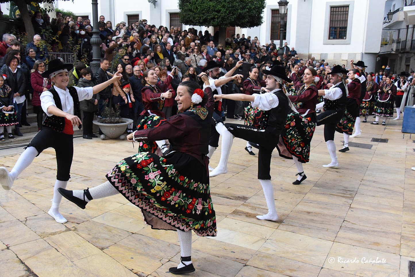 Acto seguido, se iniciaba la actuación del Grupo Municipal de Coros y Danzas, en el espacio que queda entre las escaleras de la Plaza Mayor y los edificios colindantes, registrándose un lleno total de público en ese espacio, dispuestos a ver y escuchar la música y los bailes del folclore de la tierra, ejecutados tan bien como suele ser habitual por el numeroso grupo de jóvenes que se dieron cita en esta ocasión y que forman parte del Grupo Municipal, quienes dedicaron una de sus actuaciones al que fuera su cantaor durante decenas de años, Antonio Blánquez, “Capote”.