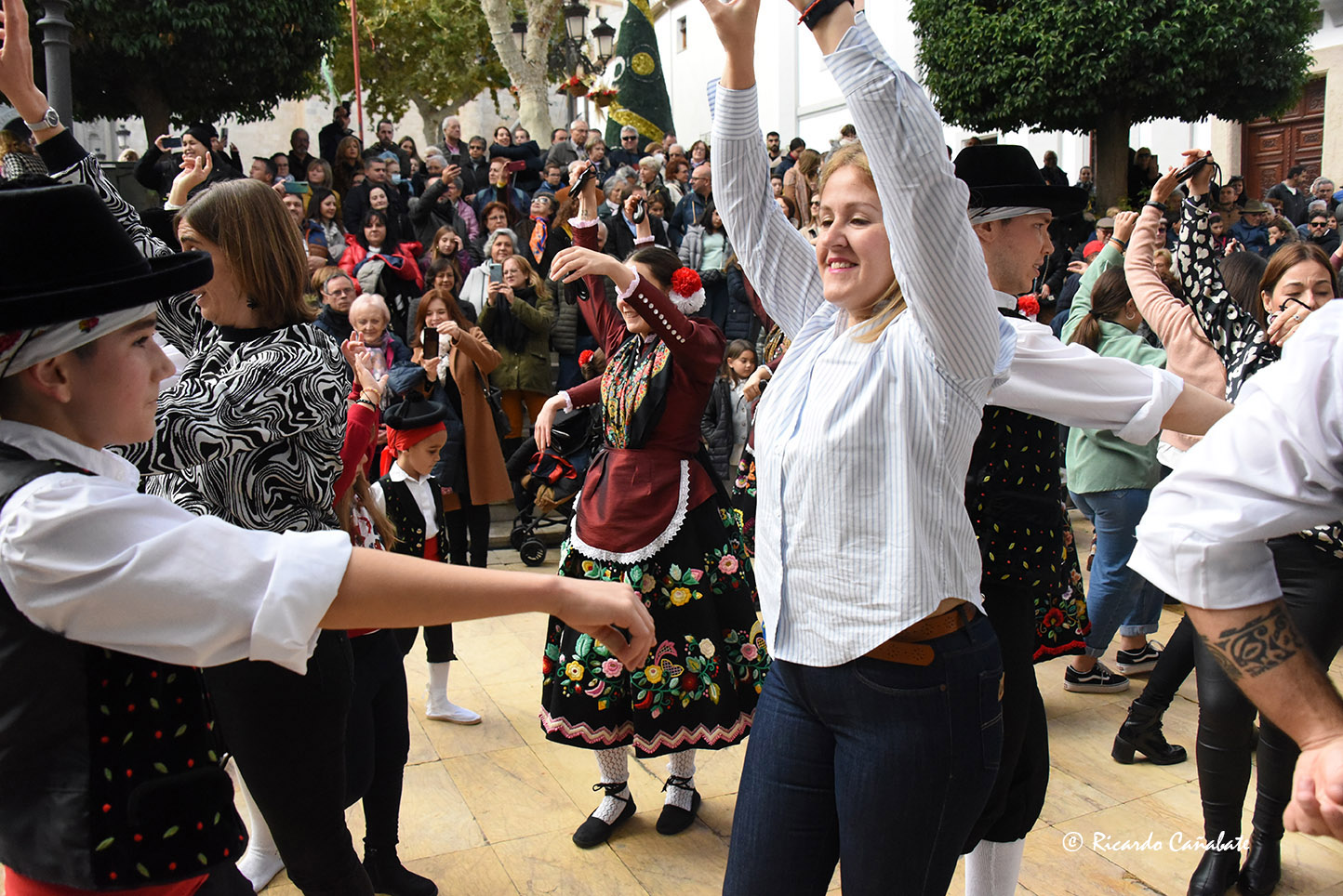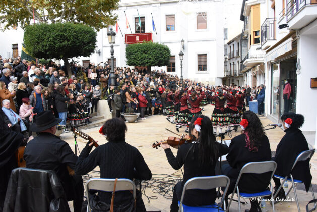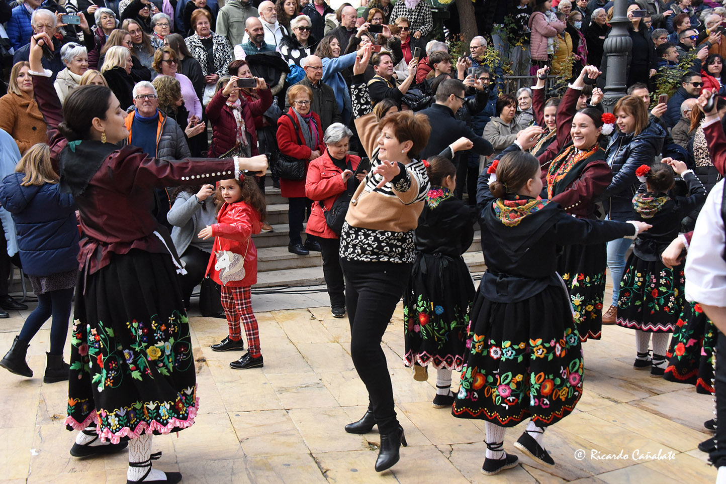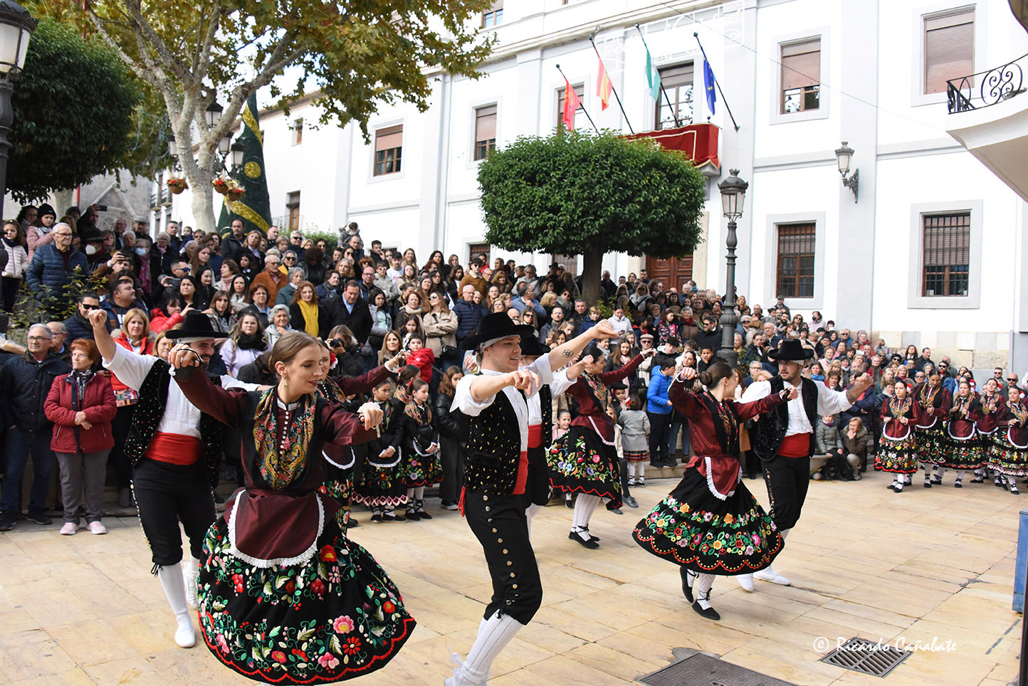 Acto seguido, se iniciaba la actuación del Grupo Municipal de Coros y Danzas, en el espacio que queda entre las escaleras de la Plaza Mayor y los edificios colindantes, registrándose un lleno total de público en ese espacio, dispuestos a ver y escuchar la música y los bailes del folclore de la tierra, ejecutados tan bien como suele ser habitual por el numeroso grupo de jóvenes que se dieron cita en esta ocasión y que forman parte del Grupo Municipal, quienes dedicaron una de sus actuaciones al que fuera su cantaor durante decenas de años, Antonio Blánquez, “Capote”.