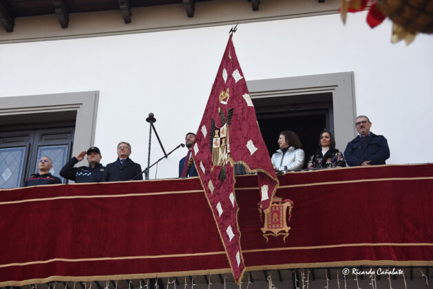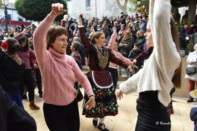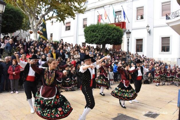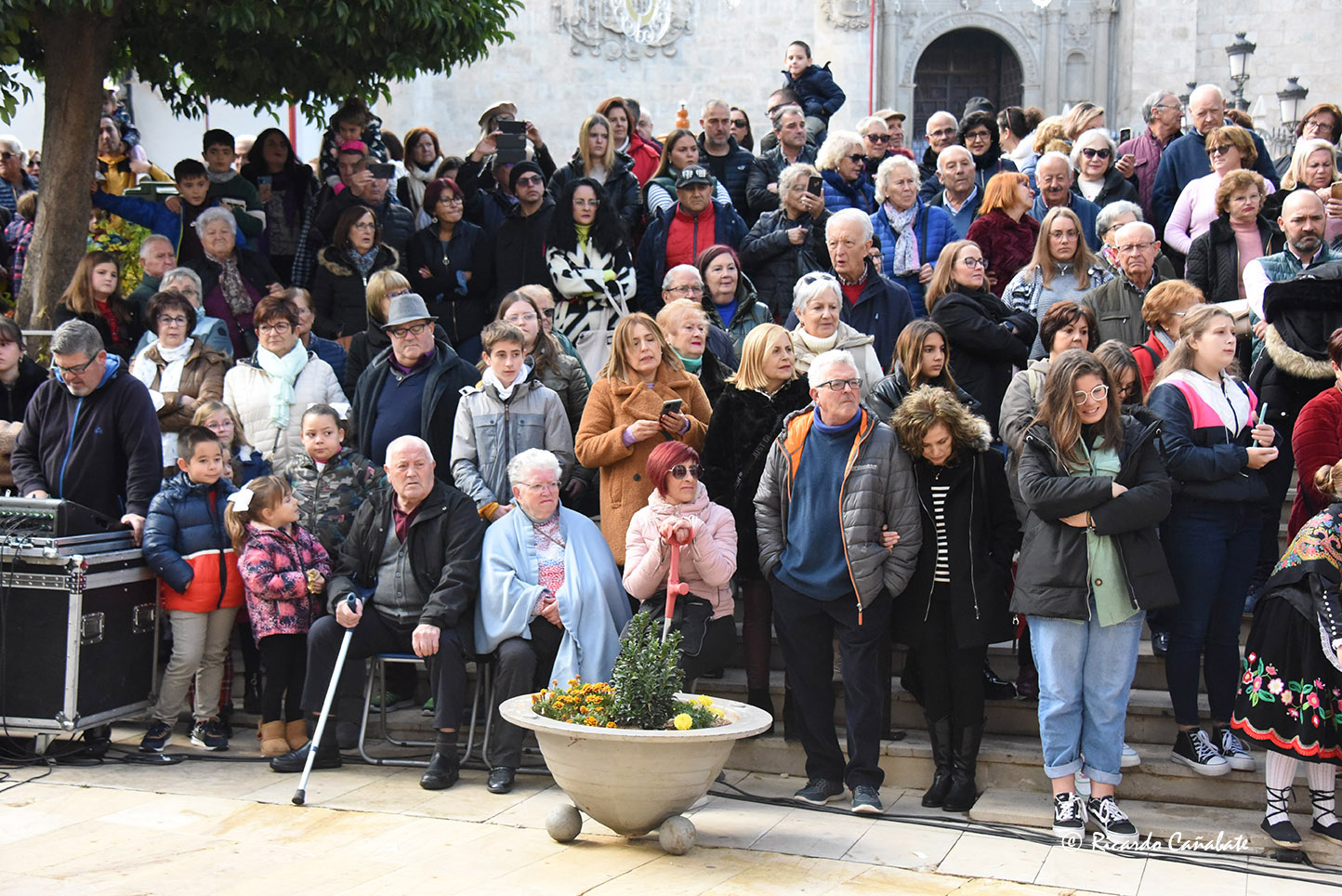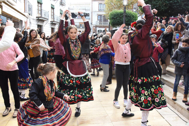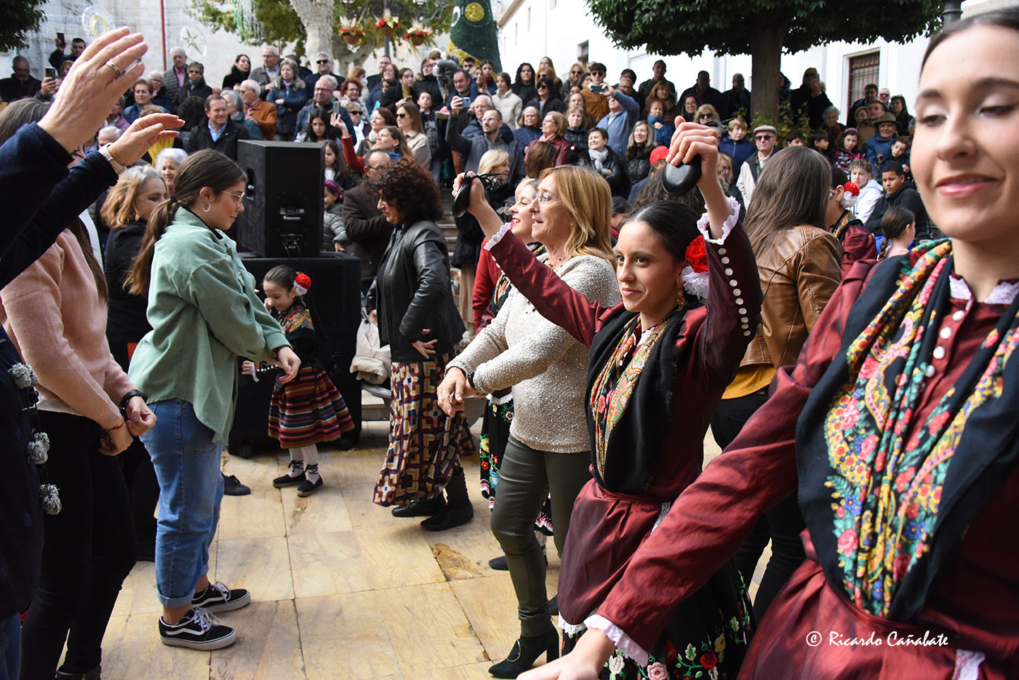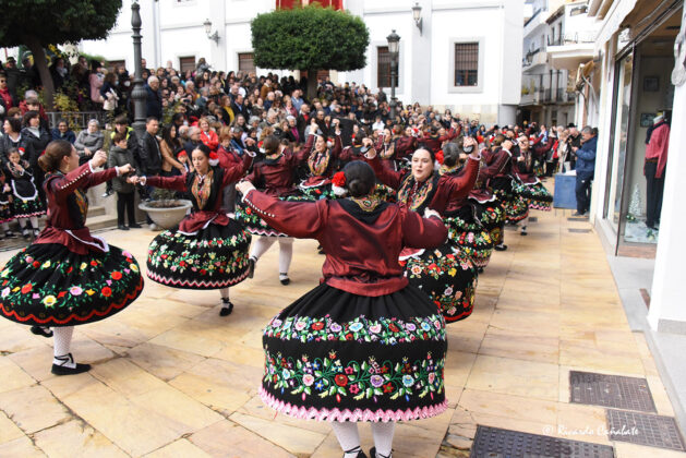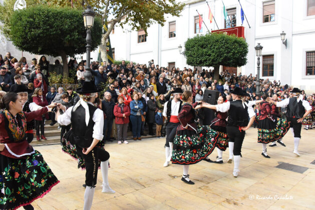 Acto seguido, se iniciaba la actuación del Grupo Municipal de Coros y Danzas, en el espacio que queda entre las escaleras de la Plaza Mayor y los edificios colindantes, registrándose un lleno total de público en ese espacio, dispuestos a ver y escuchar la música y los bailes del folclore de la tierra, ejecutados tan bien como suele ser habitual por el numeroso grupo de jóvenes que se dieron cita en esta ocasión y que forman parte del Grupo Municipal, quienes dedicaron una de sus actuaciones al que fuera su cantaor durante decenas de años, Antonio Blánquez, “Capote”.