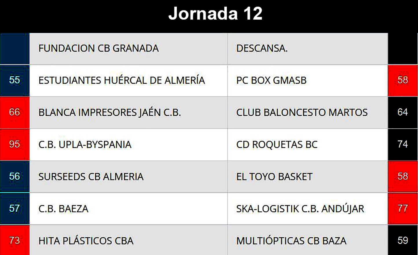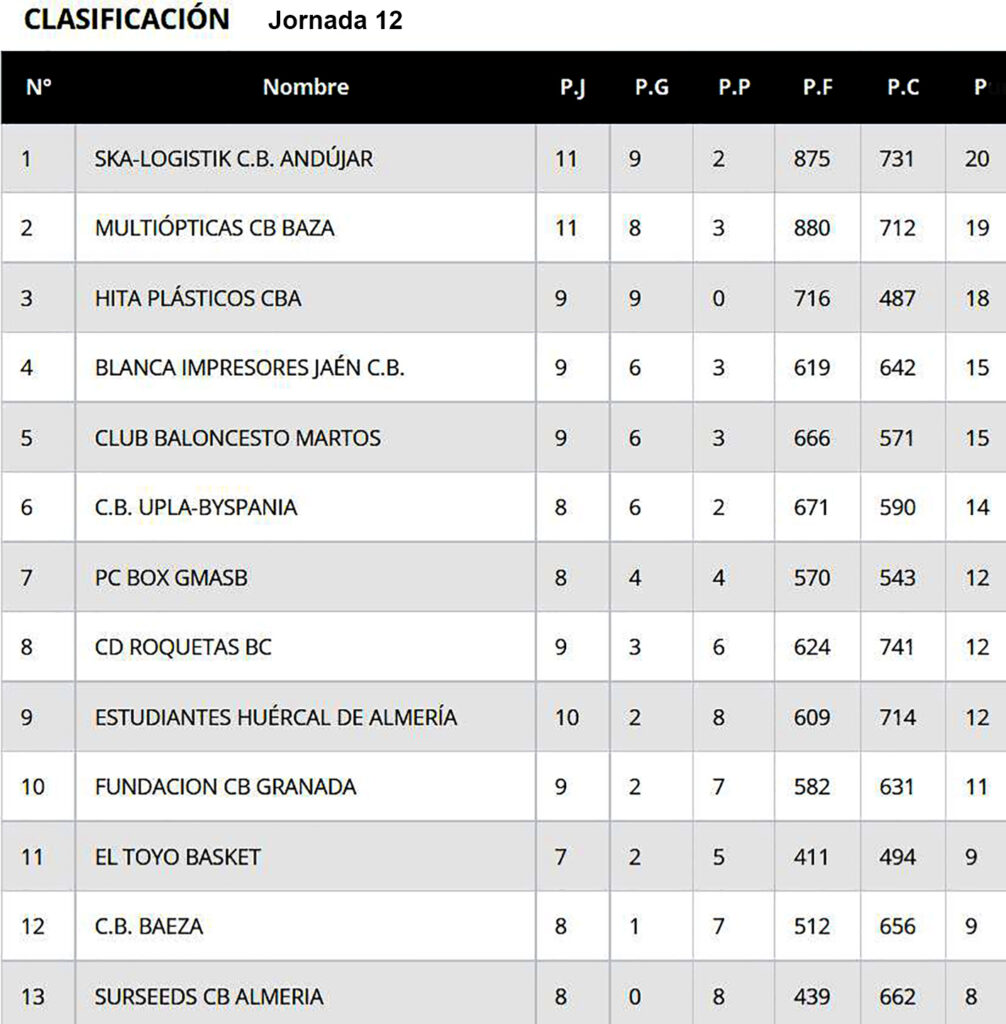 Resultados y clasificación tras la última jornada del grupo C de la Primera Nacional andaluza de baloncesto (Clicar en las imágenes para ampliarlas):