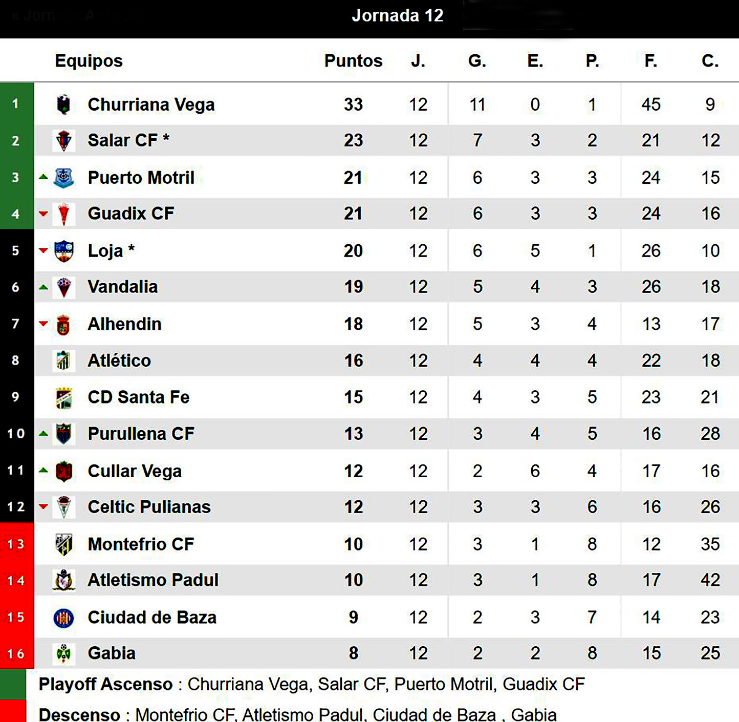 Resultados y clasificación tras la última jornada del grupo granadino de la Primera Andaluza Senior de fútbol (Clicar en las imágenes para ampliarlas):