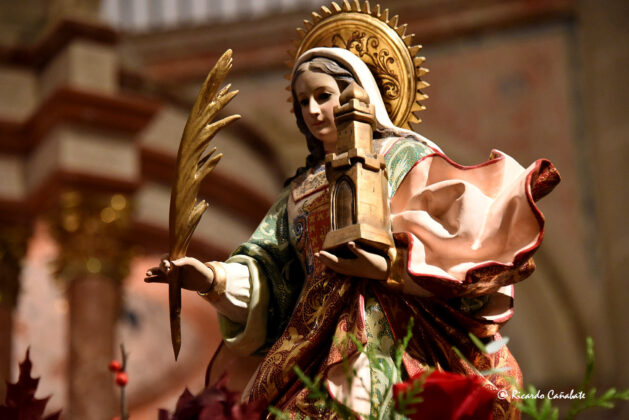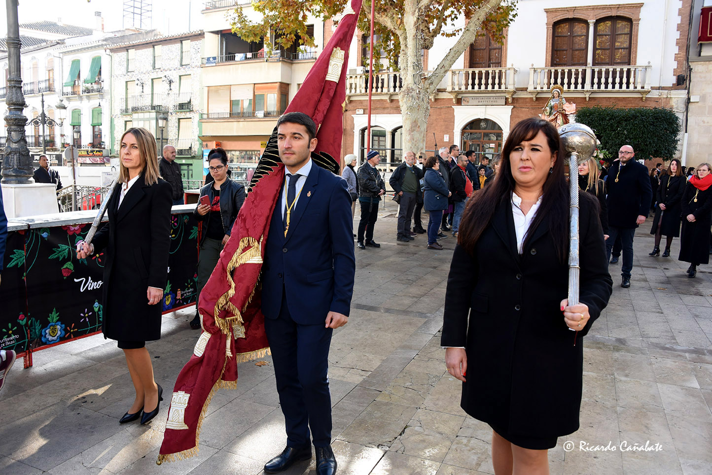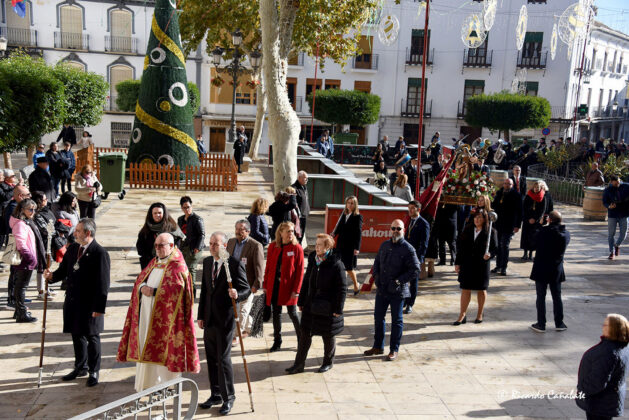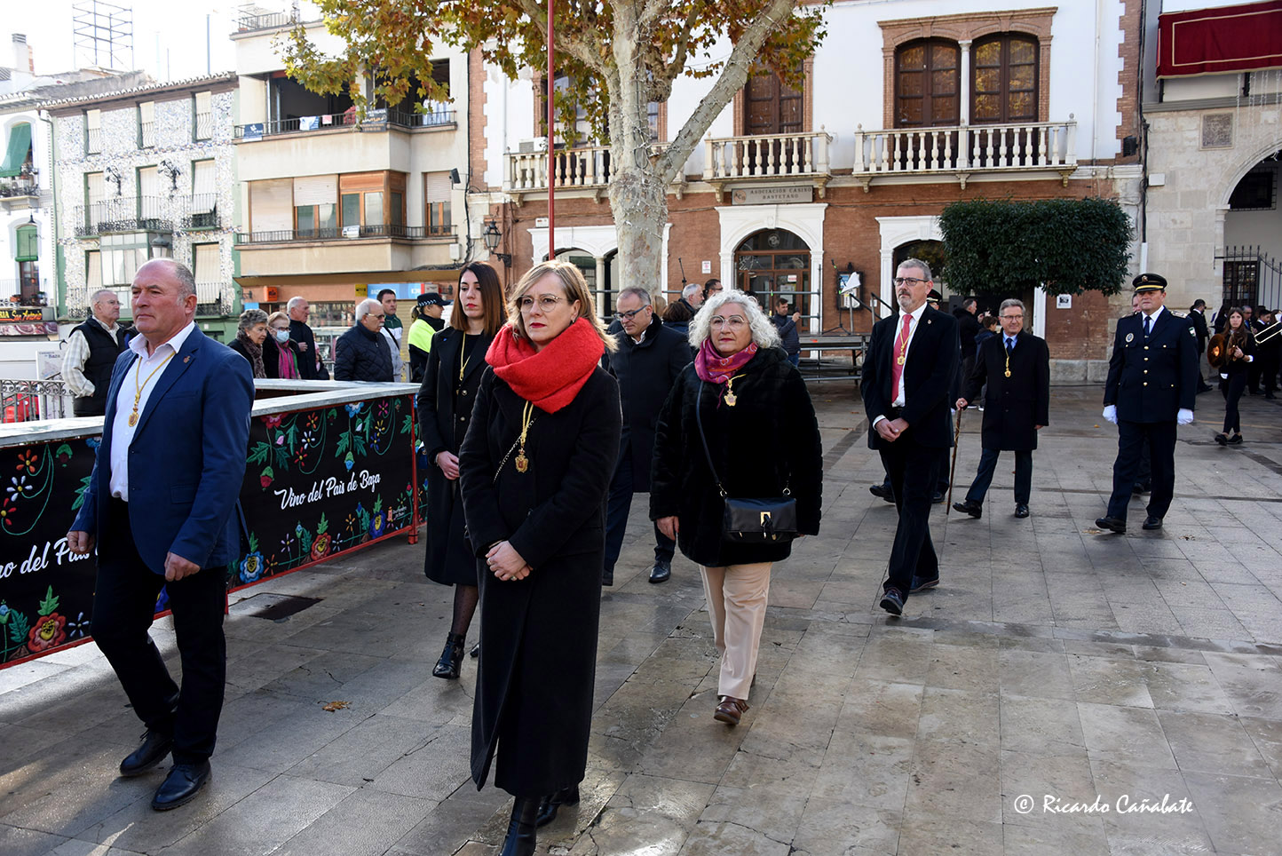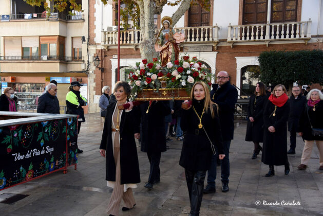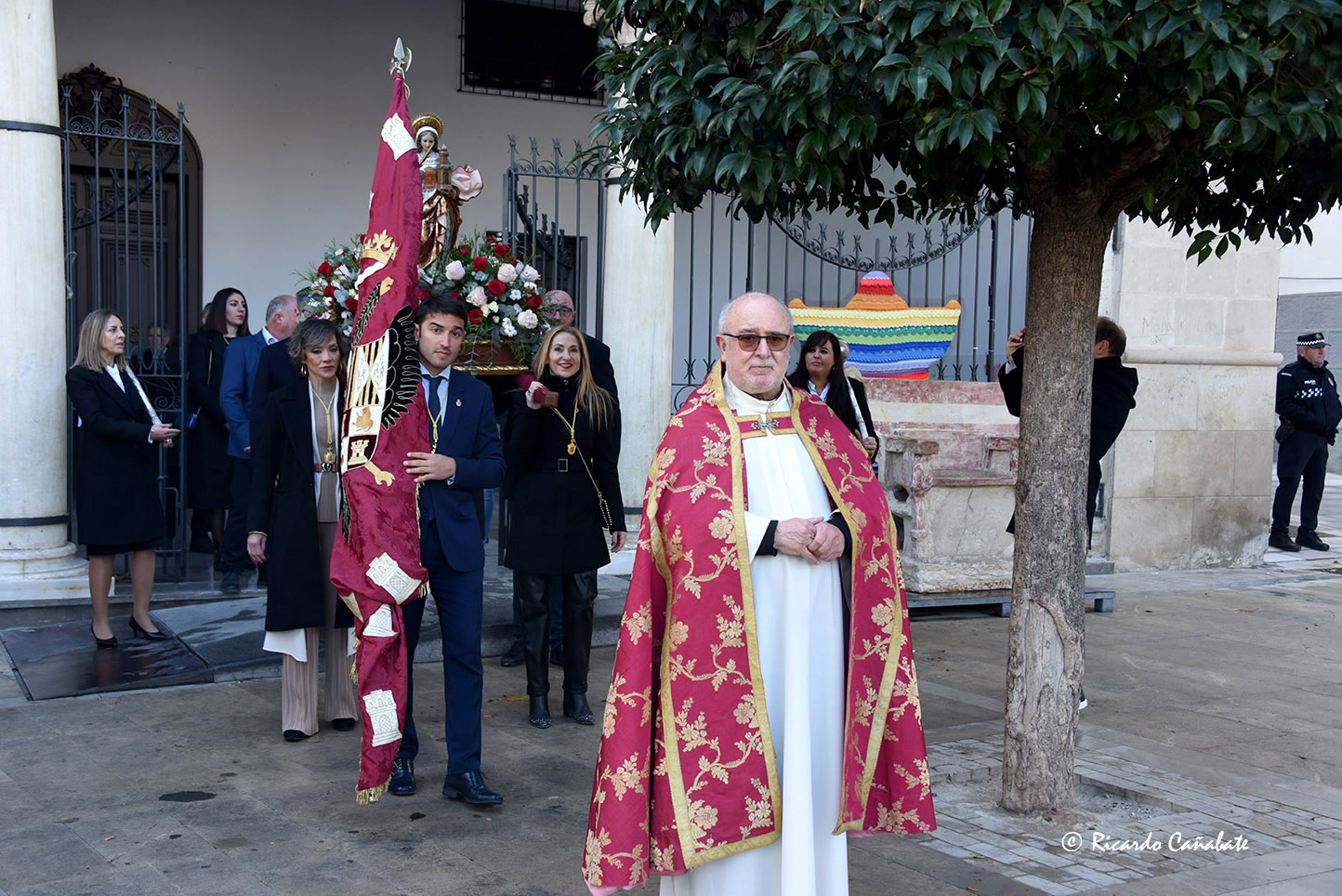 La tradicional procesión de Santa Bárbara, la actuación del Grupo Municipal de CCyDD y la cata de los nuevos vinos del país, marcaban ayer el día de la Patrona bastetana. La mañana del domingo, tras una tímida visita de la lluvia a nuestra ciudad, lucía radiante cuando unos minutos antes de las 12 del mediodía salía desde la Iglesia Mayor la comitiva integrada por el clero de esta iglesia, la Federación de Cofradías, las Hermandades y Cofradías de Gloria de la ciudad y una representación de Cáritas, quienes se dirigían hasta las puertas del Ayuntamiento, donde las autoridades se unían a la comitiva de la procesión que emprendía el camino de vuelta a la Colegiata, donde tuvo lugar la tradicional Misa en honor de la Patrona, oficiada por el párroco, Manuel Millán, quien disculpó la ausencia del clero del resto de parroquias locales ya que, debido a la festividad del domingo, tenían celebraciones en sus respectivas sedes.
