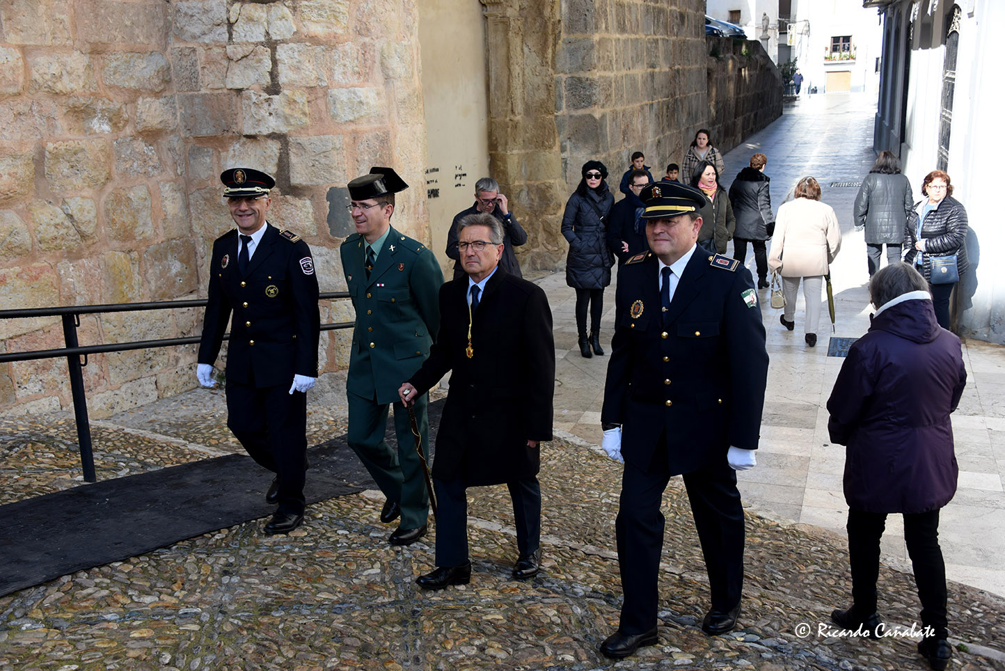 Destacar también que, como ya ocurriera el día anterior, acudió más público adulto que en otras ocasiones, lo que llevó a que la Iglesia Mayor ocupara sus asientos en su totalidad, con Santa Bárbara en el altar mayor y con todos los estandartes de hermandades y cofradías quedaran expuestos ante el mismo, durante la ceremonia en la que ocuparon lugar destacado el alcalde bastetano y los representantes de la Guardia Civil y Policía Nacional.