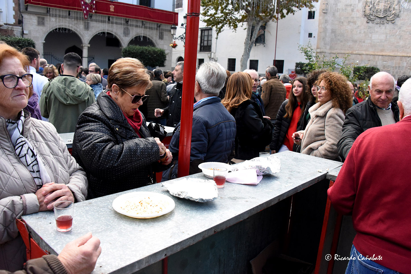La fiesta seguía con la inauguración de la temporada del “Vino del País”, una reciente costumbre que trae a los vinateros de la ciudad hasta la Plaza Mayor, donde dan a probar sus caldos recién elaborados, en los numerosos puestos que se instalan en este lugar, junto a otros que ofrecen viandas y las típicas tapas con las que compartir el nuevo vino. Tapas que este año no tardaron mucho en agotarse, ante la gran demanda de muchas de ellas, entre las que fueron las gachas y las migas las primeras en “desaparecer”.