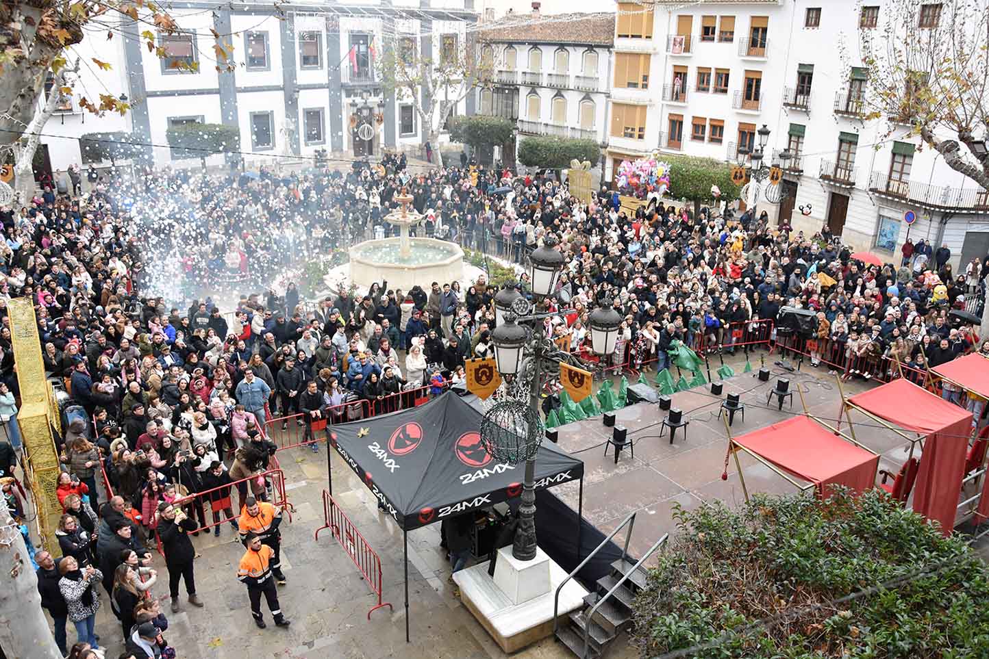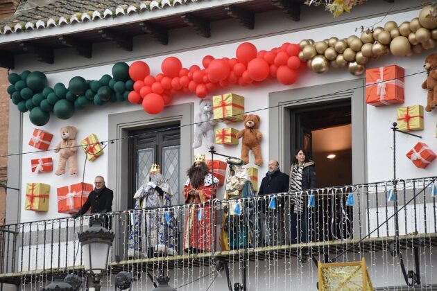 Una vez finalizado el desfile, los Reyes Magos fueron recibidos en el balcón del Museo Arqueológico, en la Plaza Mayor, donde saludaron al público congregado antes de situarse en sus tronos para atender a los más pequeños. Este acto sustituyó al tradicional cierre vespertino, habitual en años anteriores.