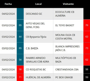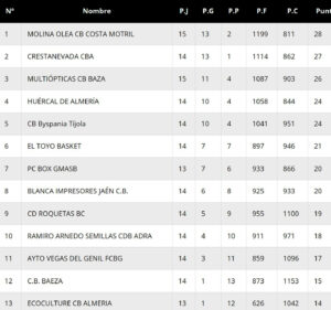 Digamos finalmente que, por un fallo en la Federación, no podemos subir la clasificación correcta dado que, precisamente, el resultado del equipo bastetano no es correcto.