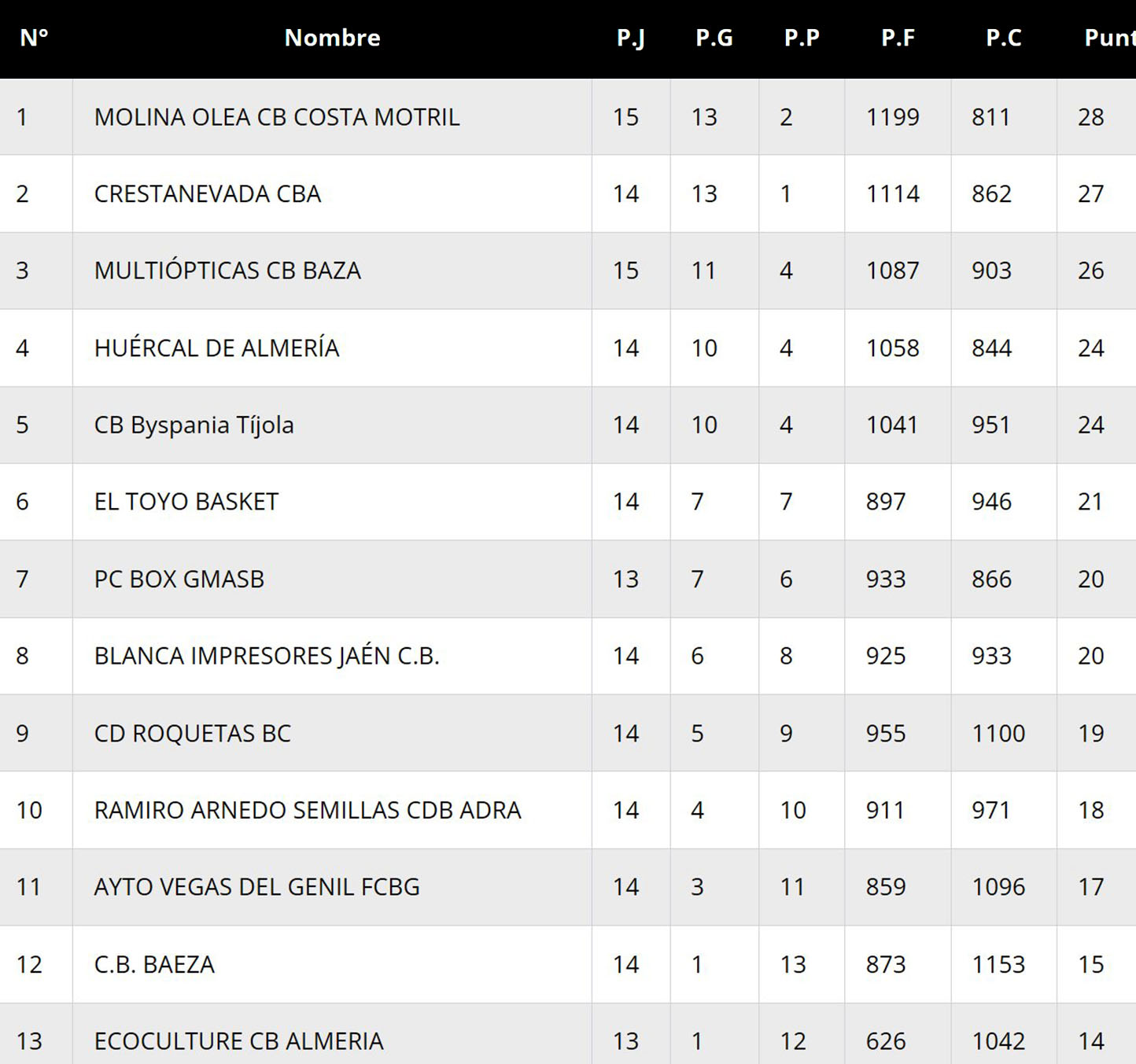 Digamos finalmente que, por un fallo en la Federación, no podemos subir la clasificación correcta dado que, precisamente, el resultado del equipo bastetano no es correcto.