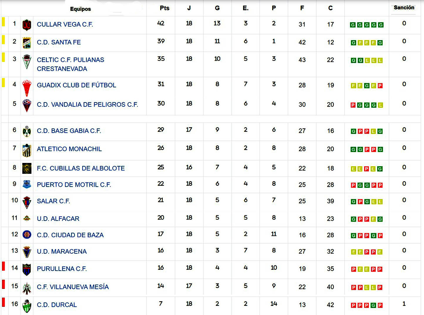 Resultados y clasificación tras la última jornada en el grupo granadino de la Primera Andaluza senior de fútbol (Clicar en las imágenes para agrandarlas):