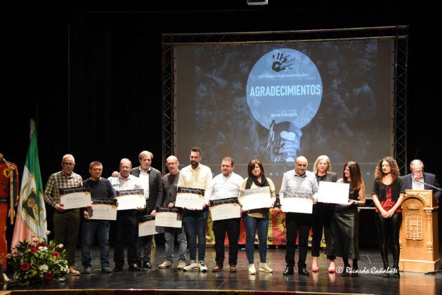 La ya comentada actuación de Jonathan y Desirée, que terminó con la interpretación de su “Himno al Cascamorras”, coreado por el público, daba paso a la gran foto de familia, con todos los galardonados sobre el escenario, con lo que se puso final a esta otra fiesta cascamorrera.