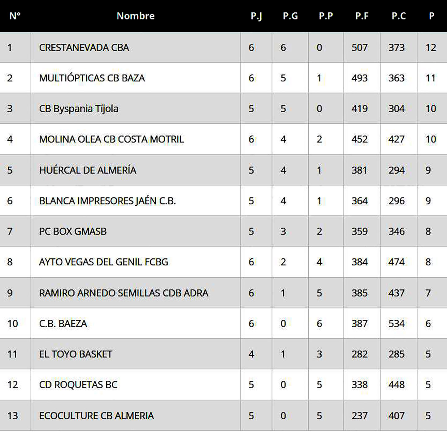 Resultados y clasificación, tras la jornada 6, en el grupo C de la Primera Nacional de baloncesto. (Clicar en las imágenes para ampliarlas)