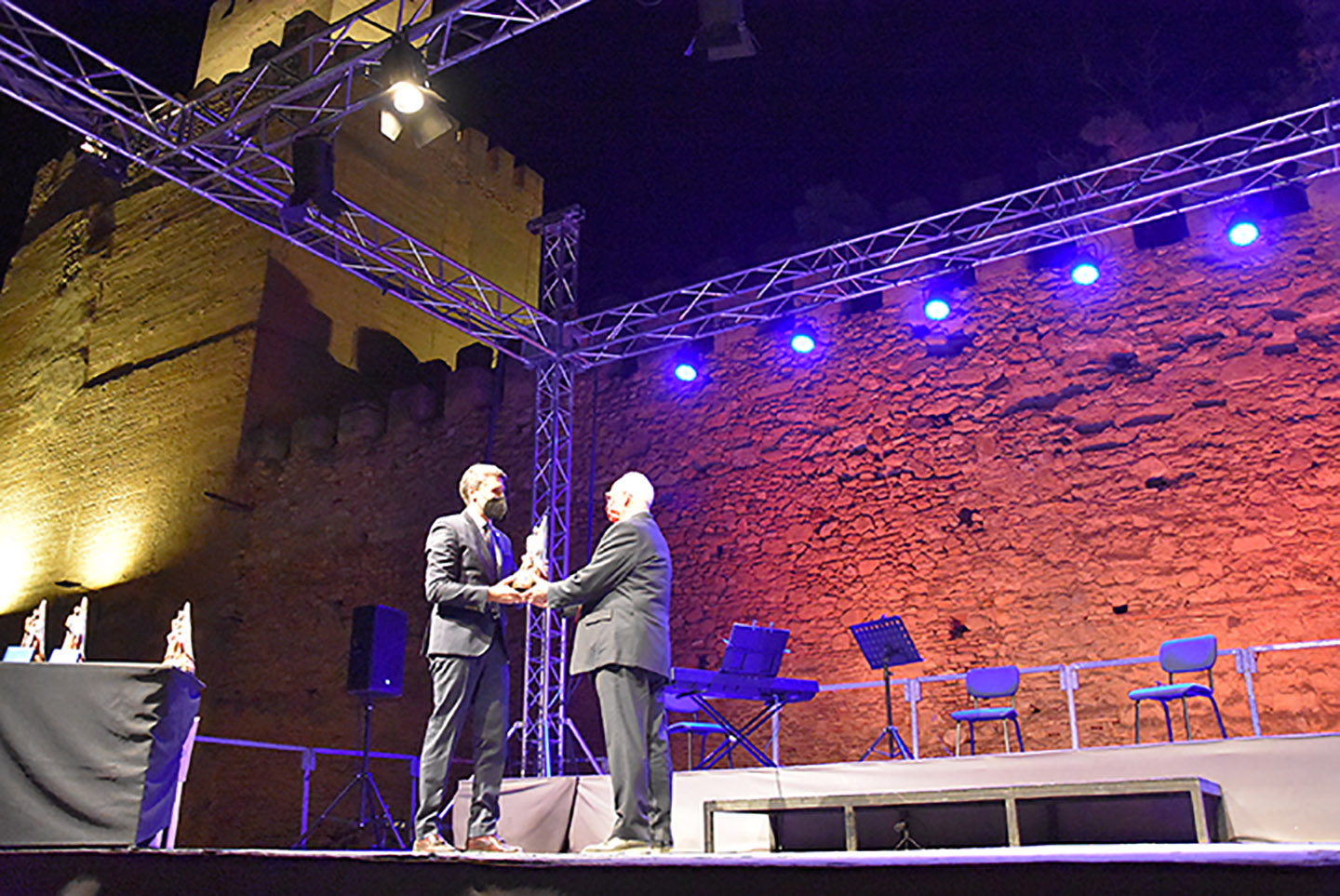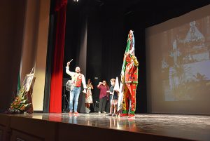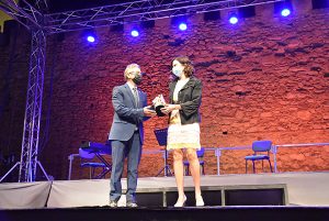 Casi desapercibida pasó la presencia del Cascamorras 2021, José Antonio Escudero, quien solo apareció por el escenario unos instantes, para entregar uno de los galardones, quedándose sin recibir la bandera que marca su nombramiento, por lo que la presencia cascamorrera quedó en manos de la periodista accitana, María Ruiz, buena conocedora también de la fiesta en Baza y persona de ágil y buena pluma en su profesión y allá donde la requieran.