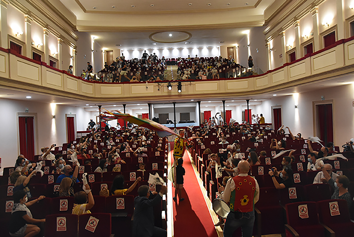 Antes de entrar al Teatro, todo el que lo ha deseado ha podido hacerse una foto en el photocall instalado a la entrada del Dengra. Y ya en el acceso, además del gel hidroalcohólico para las manos, cada asistente ha recibido una pañoleta conmemorativa de esta edición marcada por la pandemia y por la celebración del 50 Aniversario del Descubrimiento de la Dama de Baza.