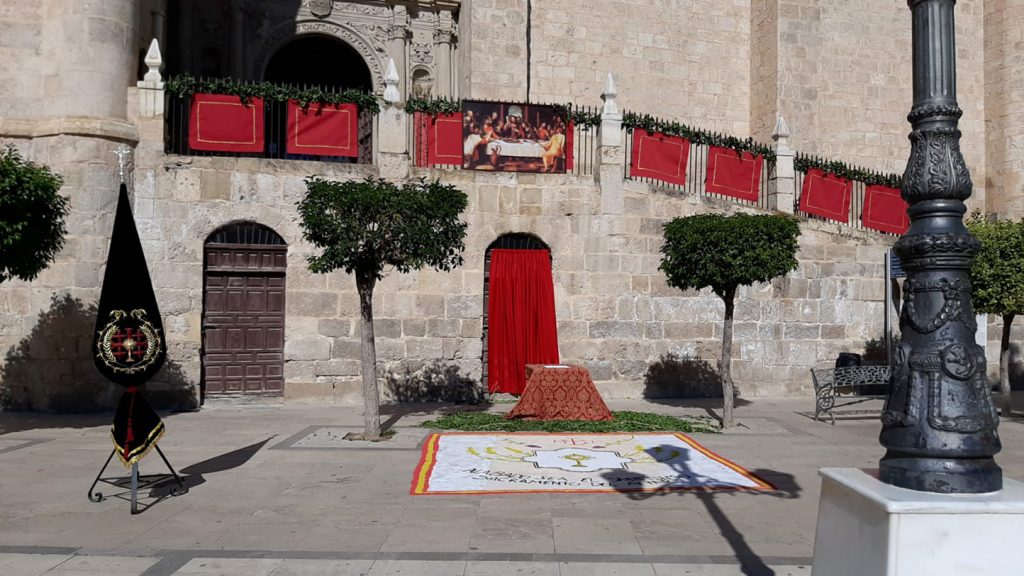 En la Plaza Mayor estaban también los estandartes de las hermandades y cofradías y algunas instalaciones más que daban vistosidad a una fecha tan especial en la que las diferentes parroquias de la ciudad celebraron la Santa Misa en sus respectivas sedes, con anterioridad al acto sacramental convocado para el mediodía.