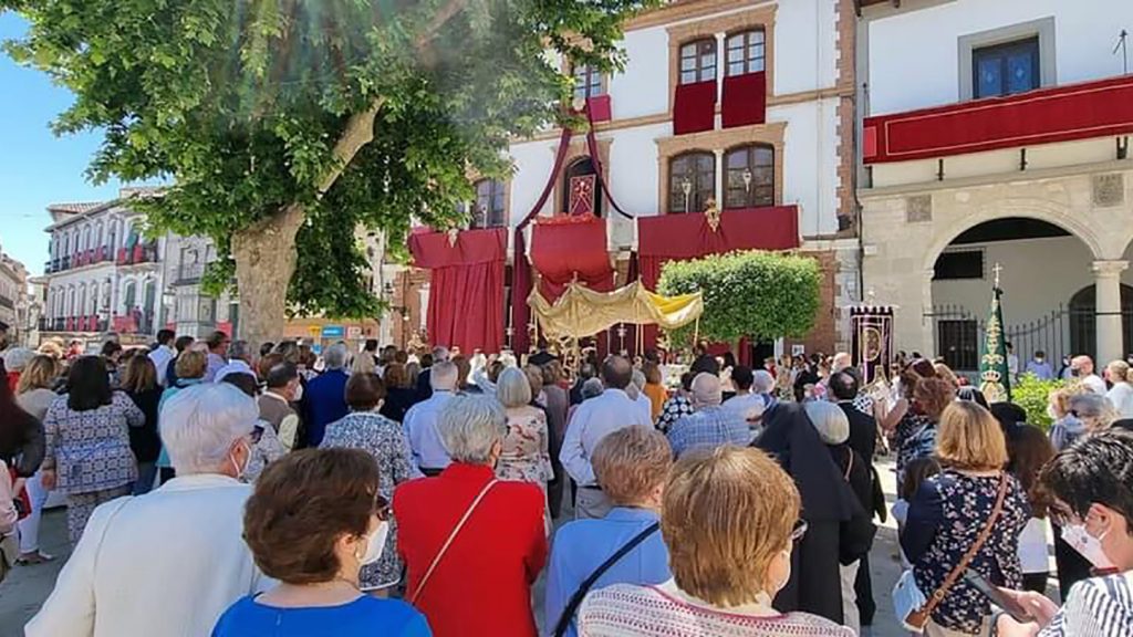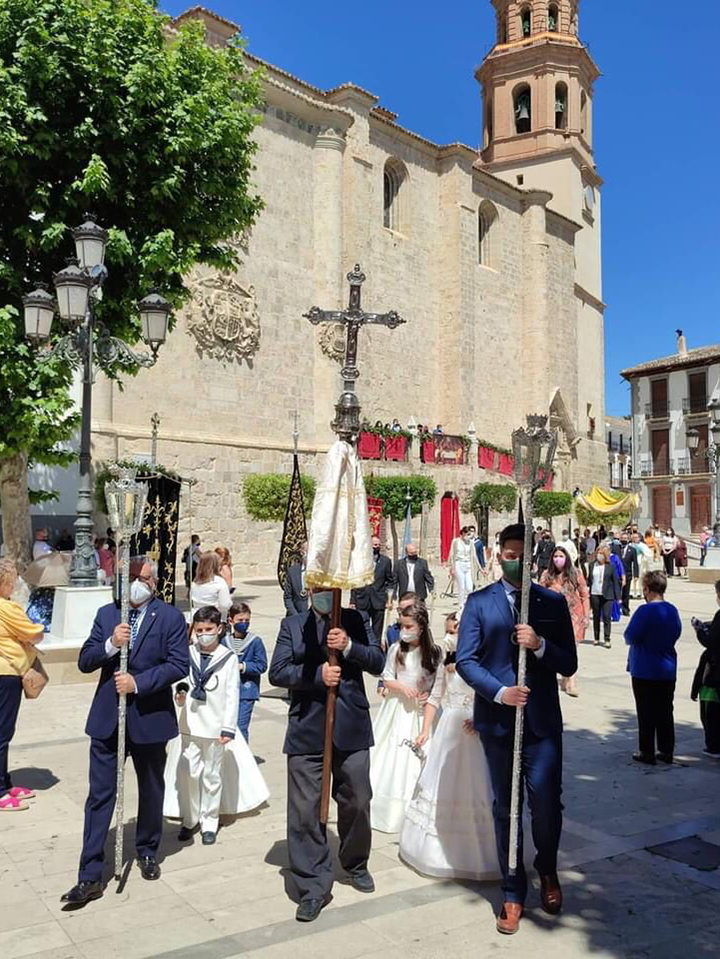 Un acto que se anunciaba como una concentración de fieles en la Plaza Mayor para tener un momento de oración con el Santísimo Sacramento”, el cual partía desde la Iglesia Mayor para recorrer dicha Plaza, con una comitiva encabezada por la Cruz de Guía, en la que estaban los diferentes hermanos mayores de las hermandades y cofradías bastetanas, tanto de pasión como de gloria, el clero de nuestra ciudad y la Custodia bajo palio.