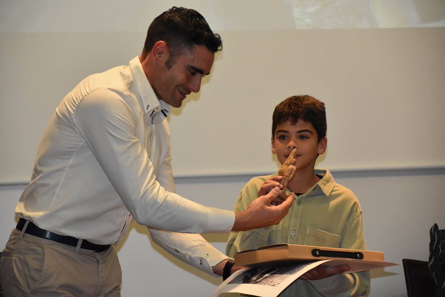Seguidamente, recibió su galardón el niño Mario Mirón Cánovas, por su primera participación en la carrera del Cascamorras, en primera línea, participando en todas las juras de bandera, a pesar de su corta edad. También recibió su estatuilla Manuel Martínez Ferrer, cascamorrero autor del libro “Cascamorras más que una fiesta”.
