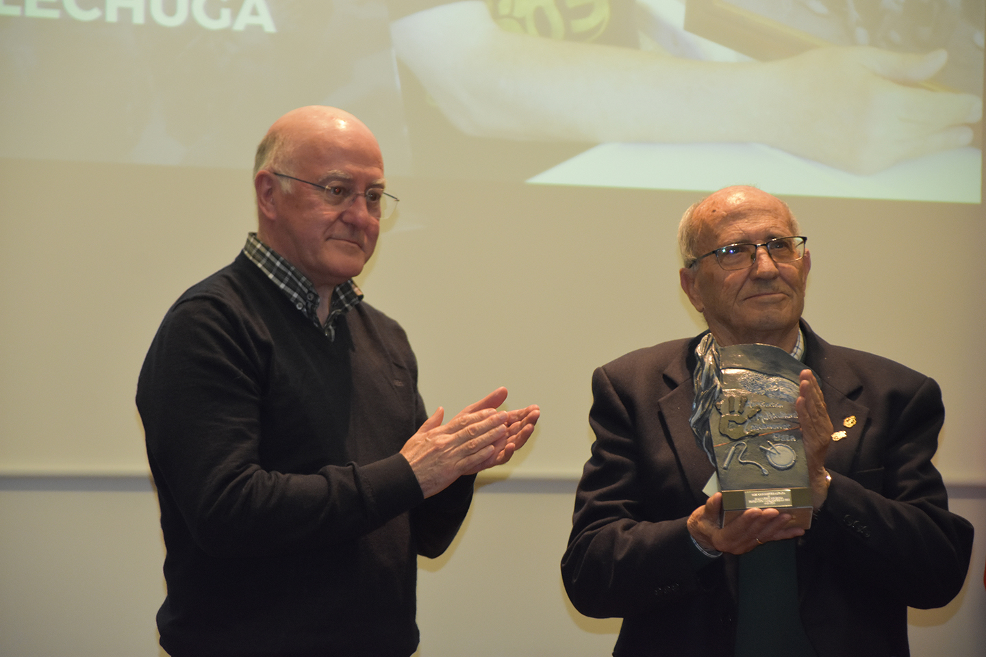 Y, como suele ocurrir tantas veces, no faltó quien estuvo en fuera de juego todo el tiempo, mientras para los demás era un secreto a voces, algo que ocurrió a Ricardo Cañabate, quien al término ya de su labor en la presidencia de esta asociación, recibía también su estatuilla y el pin de oro que le impuso el alcalde bastetano y primer secretario de esta asociación, Manolo Gavilán.
