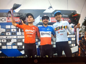 Precisamente fua al inicio de esa última vuelta cuando David Valero dejó la cola de su grupo y se fue decidido a colocarse en la segunda posición de la carrera, en la que se iba intercambiando con Colombo, con momentos como en una de las últimas subidas Valero vio que su bicicleta patinaba y echó pie a tierra o cuando Schurter sufrió una caída y se quedó algo más rezagado, junto a Pierre de Froidmont, lo que sirvió para pensar que las dos medallas restantes se las disputarían Colombo y Valero, como así fue y por este orden, mientras que Luca Braidot recibió premio a su esfuerzo, siendo el cuarto en la meta y, tras él, Pierre de Froidmont que completaba el podio en la quinta posición. El líder de la Copa del Mundo, el suizo Nino Schurter, tuvo que conformarse con el sexto puesto, a1’ y 50” del vencedor y arañando 130 puntos, dejando en 30 puntos menos la diferencia que ahora tiene sobre el ciclista bastetano.