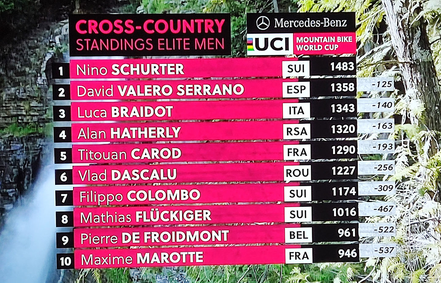 Una prueba en la que se impuso el francés Titouan Carod, que sumaba su segundo podio de la temporada tras la plata de la semana pasada en Estados Unidos, alzándose esta vez con el triunfo tras liderar la carrera de principio a fin, mientras que David Valero volvió a subir al podio con una tercera posición que le deja segundo en la clasificación general de Copa del Mundo, tras colarse entre ellos el italiano Filippo Colombo, que fue segundo.