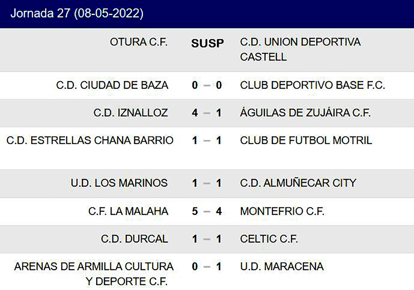 Resultados y clasificación en el grupo granadino de la Segunda Andaluza Sénior tras la jornada 27 (Clicar en las imágenespara ampliar):
